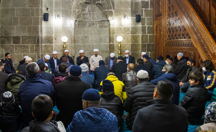 Erzurum İl Müftülüğü İlahi Korosunun seslendirdiği ilahilerin ardından cemaate hitap eden İl Müftüsü Şahin Yıldırım, “Gençlik hayatın en önemli evrelerinden biridir. İnsanın hem zihinsel hem bedensel olarak güçlü olduğu bir dönem olması münasebetiyle, bu döneme dair sorumluluğu da o derece büyüktür.” dedi.