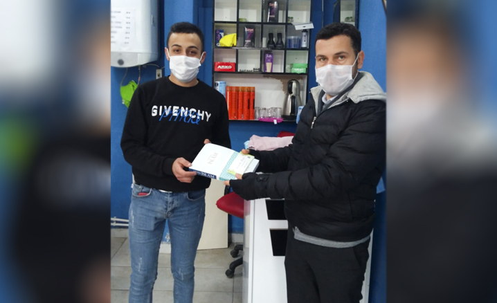 Koronavirüs tedbirlerine riayet edilerek gerçekleştirilen ziyaretlerde esnafa Diyanet İşleri Başkanlığı yayınları tanıtılıyor, Diyanet dergileri ve yayınları hediye ediliyor