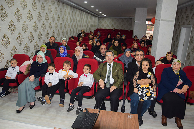 Müftülük Konferans Salonu’nda düzenlenen karne töreninde 4-6 yaş Kur’an kursu öğrencileri ilk kez karne almanın sevincini yaşadılar.