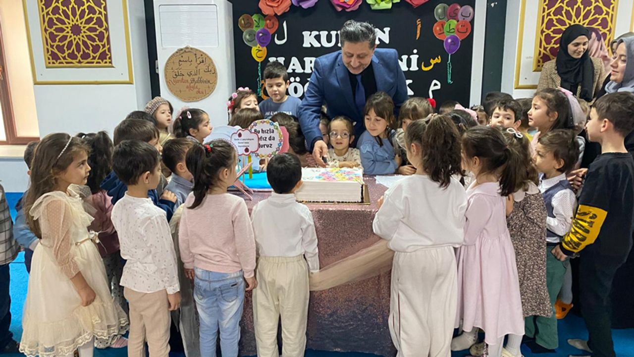 Etkinlikte minik öğrenciler, Kur'an-ı kerimden sureler okudular, Elif Ba harflerini tanıttılar.