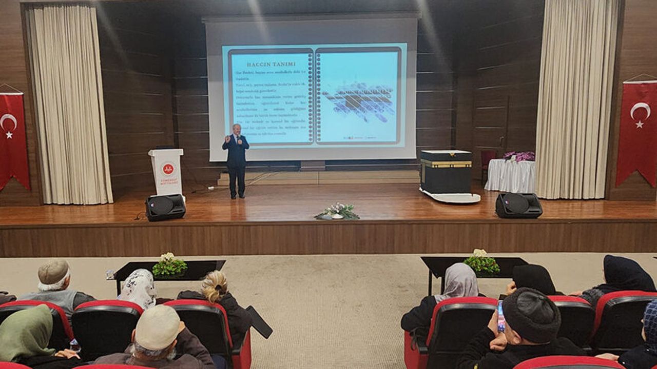 Programın açılış konuşmasını yapan İlçe Müftüsü Kamil Oktay, hac ibadetinin manevi önemine, maddi-manevi hazırlık süreçlerine ve kutsal topraklarda "bir arada yaşama bilinci"ne değindi.