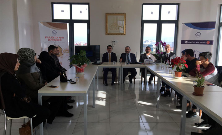 Bu kapsamda Bingöl İl Müftülüğü Aile ve Dini Rehberlik Bürosunca, yeni evlenen ve düğün hazırlığı yapan çiftlere yönelik “Evliliğe İlk Adım” semineri düzenlendi.