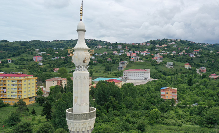 Giresun'da yapımı 35 yıldır devam eden Yeşil Cami'nin semaver şeklindeki minaresi 4,5 yılda tamamlandı.