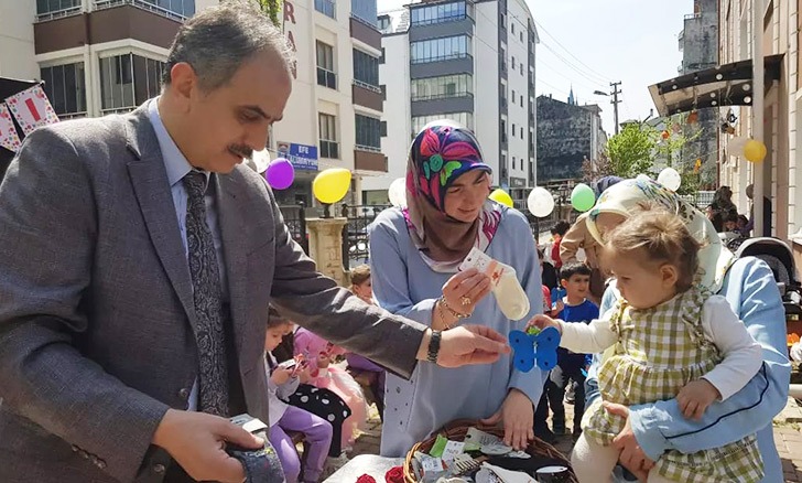 Hasanoğlu, Dolunay, Havva Hatun ve Kulak Mahallesindeki 4-6 yaş Kur'an kurslarında eğitim gören 500 öğrencinin katılımıyla gerçekleştirilen programda İlçe Müftüsü Hamza Bayram ve eşi, çocukların bayram sevincine ortak oldu.