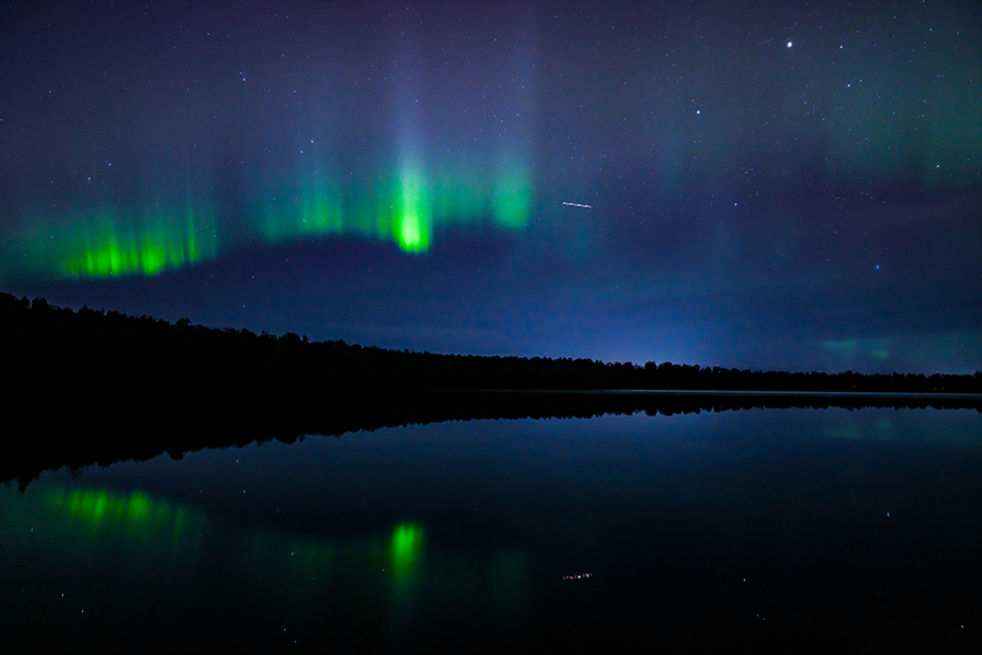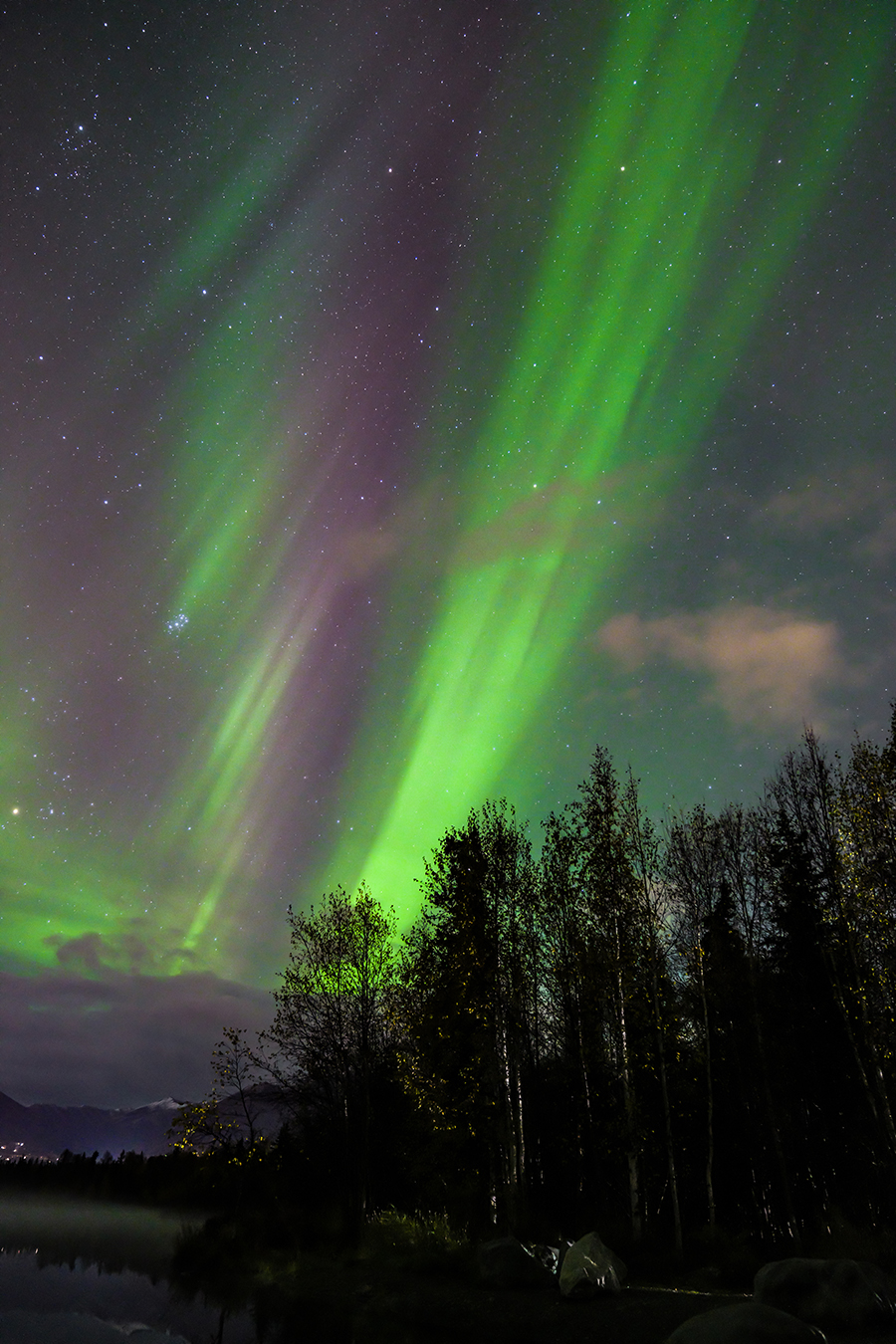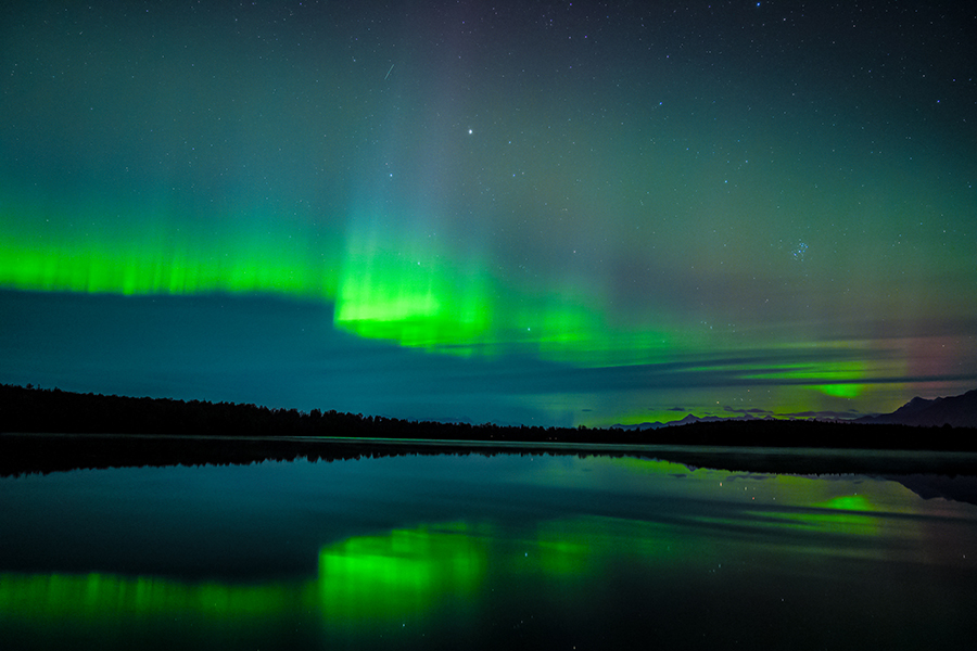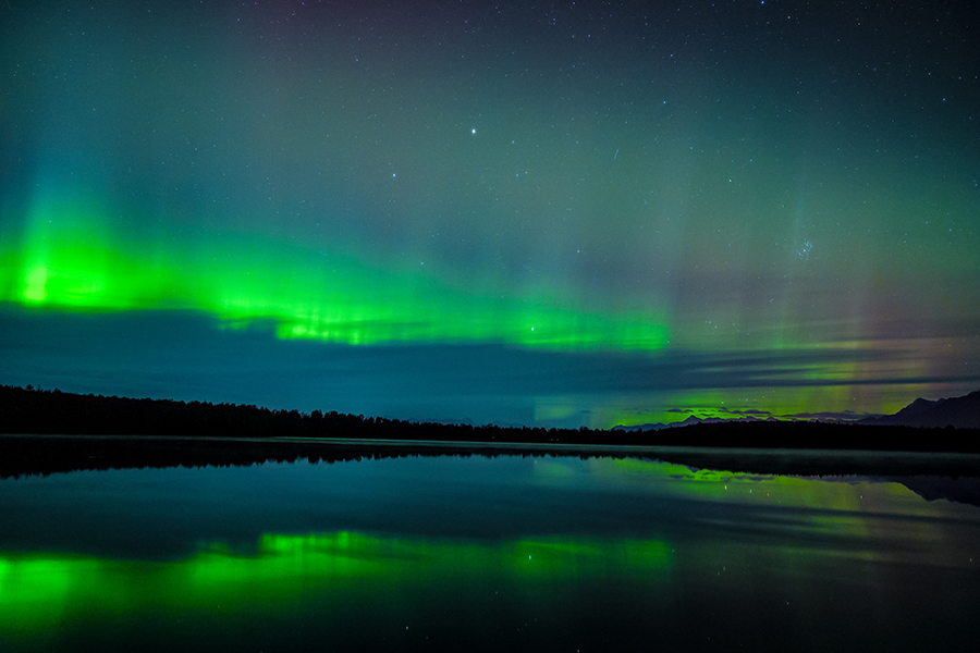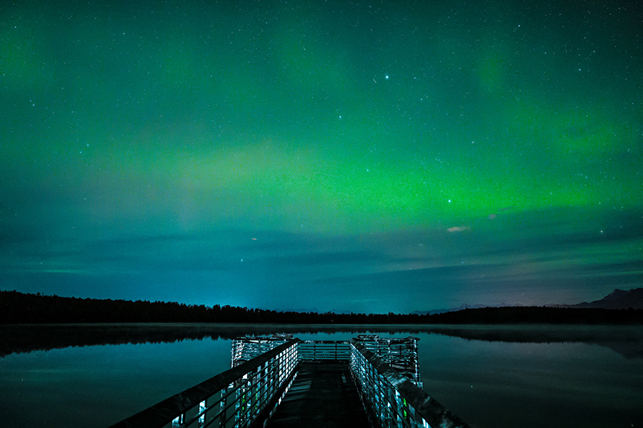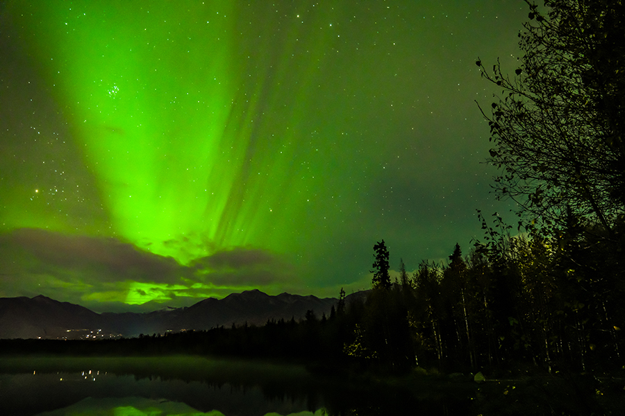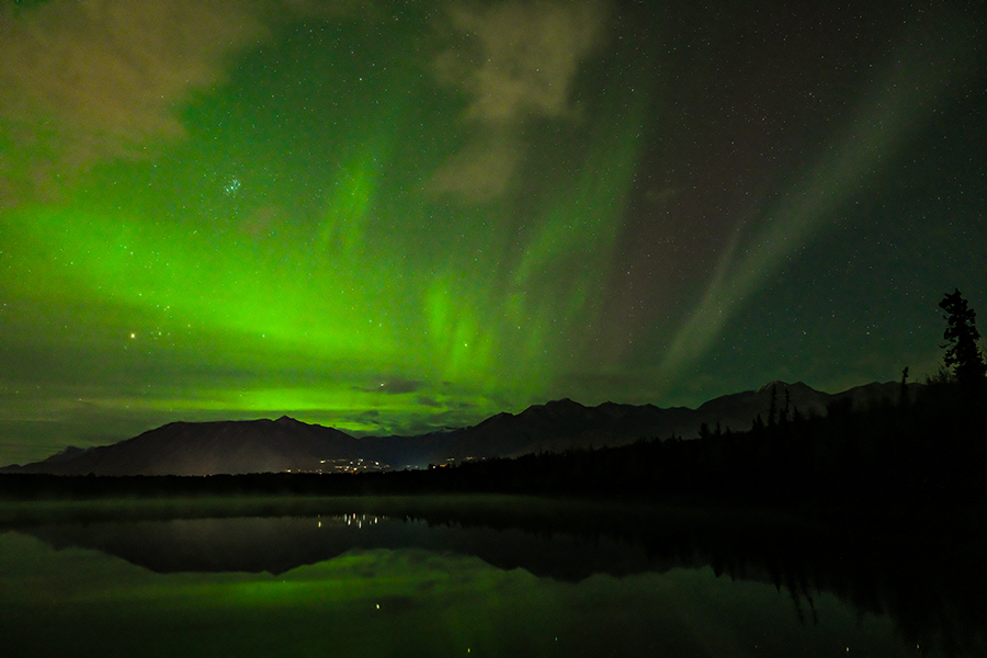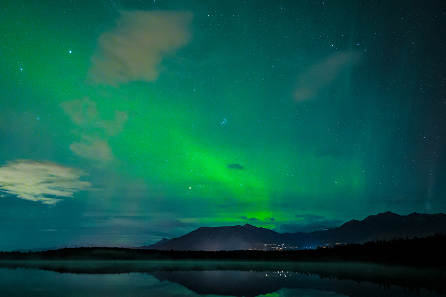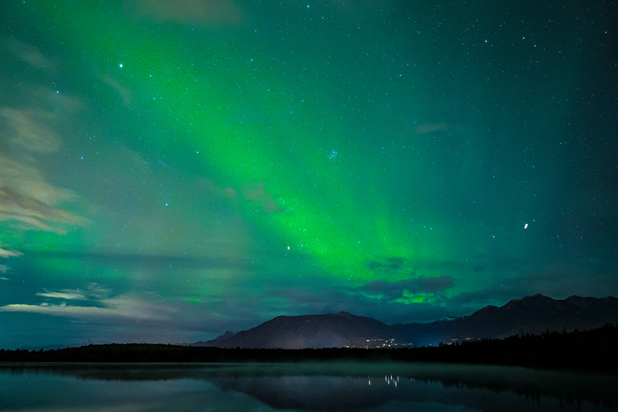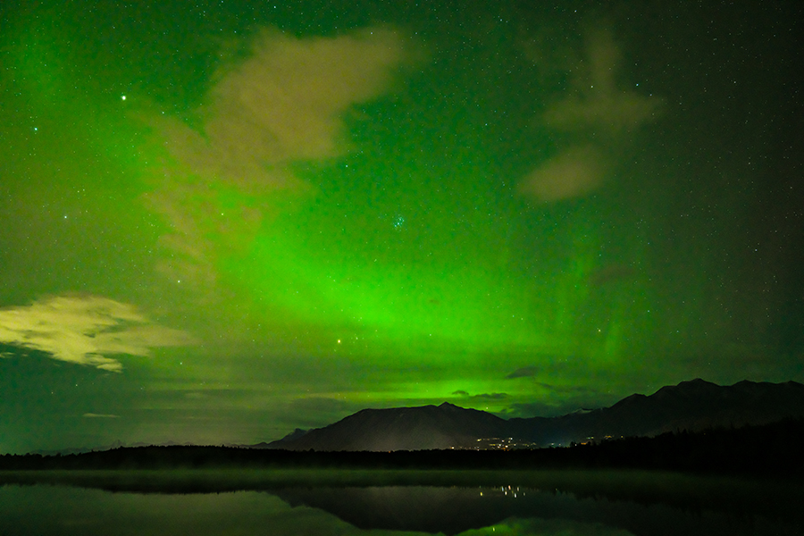 Alaska’nın Chugiak bölgesindeki Beach Lake üzerinde kuzey ışıkları (aurora borealis) gökyüzünü aydınlatıyor.