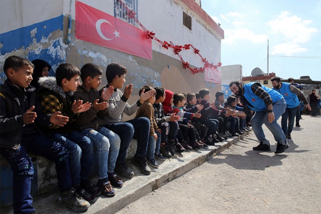 Diriliş Ertuğrul ve Kuruluş Osman dizi oyuncuları Türkiye Diyanet Vakfı gönüllüsü Celal Al, Murat Karak ve Melikşah Özen, İdlib’de savaş mağduru aileleri ve yetim kamplarını ziyaret etti.