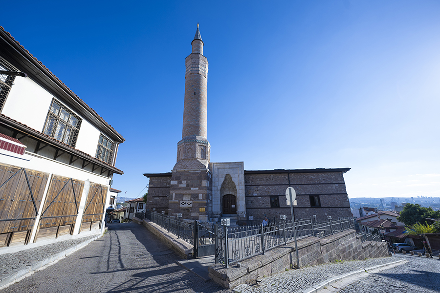Tarihi dokusu ve zarif süslemeleriyle öne çıkan Ahi Şerefeddin Camii, yüzyıllardır Ankara’nın manevi ve kültürel simgelerinden biri olmayı sürdürüyor.