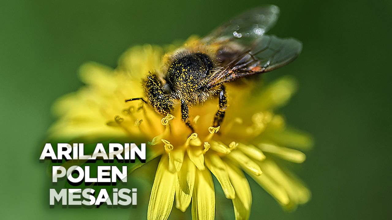 Parkta çiçeklerden polen toplayan yaban arıları görüntülendi.