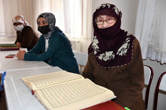Amasya'nın Hamamözü ilçesinde yaşayan 91 yaşındaki Nazmiye Candemir, ilçe müftülüğünce açılan kursta Kur'an-ı Kerim okumayı öğreniyor.
