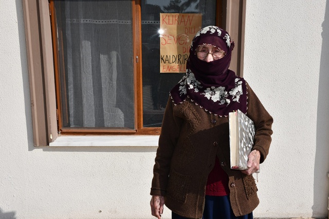"Okula göndermediler bizi. Küçükken babam öldü, annem dul kaldı. Şimdiki gibi aylık veren yoktu. Kur'an-ı Kerim'i okumayı çok seviyorum. Elimden hiç bırakmıyorum. Kur'an okumasam hiç rahat edemiyorum. Sürekli okuyorum, Allah kabul etsin, bildiğim kadar okuyorum. Herkese Kur'an okumalarını tavsiye ediyorum. Torunlarıma söylüyorum, Kur'an-ı Kerim'i öğrenin. 'Allah' deyin, 'Bismillah' deyin. Allah'ım beni Kur'an-ı Kerim'den ayırmasın, çok severek okuyorum."