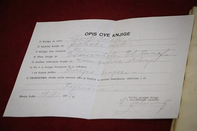 Blitovic, Bosna Hersek'teki 1992-1995 yıllarında yaşanan savaşta çok sayıda el yazması eserin hasar gördüğüne dikkati çekerek, "Eserler arasında 8 adet el yazması Kur'an-ı Kerim ve bunun dışında 8 de enam-ı şerif de bulunuyor. Kütüphanedeki en eski el yazması ise 9 Mart 1332'de kaleme alınan ancak giriş kısmı bulunmadığından yazarı bilinmeyen bir eser." ifadelerini kullandı.