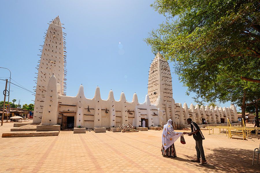 Burkina Faso’nun ikinci büyük kenti Bobo-Dioulasso’da bulunan Ulu Camii, geleneksel Sudano-Sahel mimarisini günümüze taşıyor.