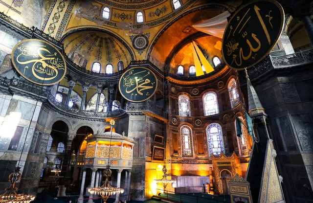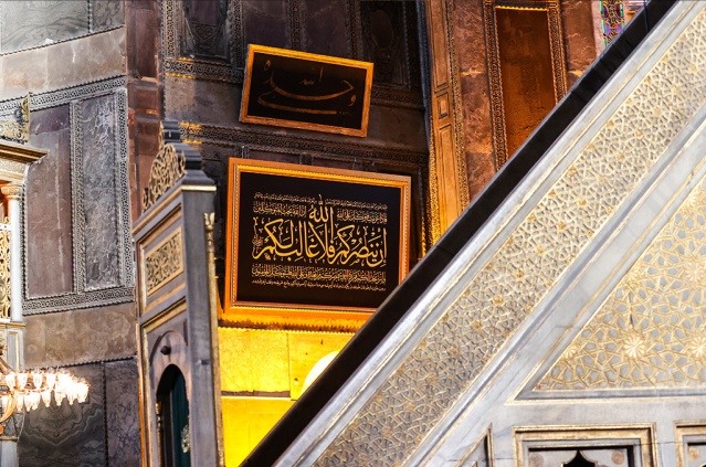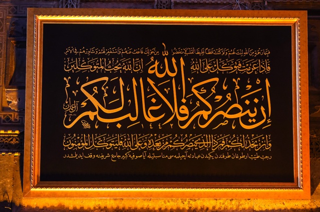Al-i İmran suresi 159. ve 160. ayetlerin yazılı olduğu tablo Ayasofya-i Kebir Cami-i Şerifi'ne asıldı