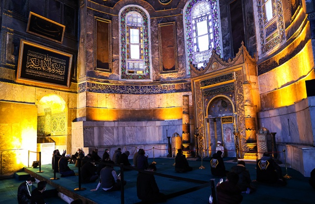 Türkiye Cumhurbaşkanı Recep Tayyip Erdoğan, 86 yıl sonra yeniden ibadete açılan Ayasofya-i Kebir Cami-i Şerifi'ne hat tablosu bağışladı.