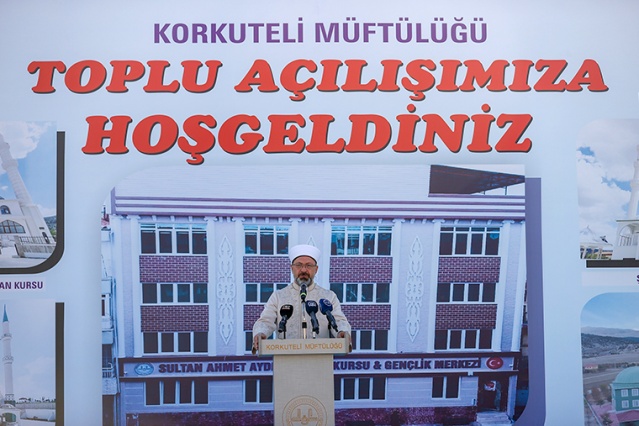 Başkan Erbaş, Sultan Ahmet Aydın Kur'an Kursu ve Gençlik Merkezi ile Korkuteli ilçesinde yapılan camilerin toplu açılışı töreninde mekanların en hayırlısının cami ve Kur'an kursları olduğunu, bu açılışlarda bulunmanın da hayırlı bir görev olduğunu söyledi.