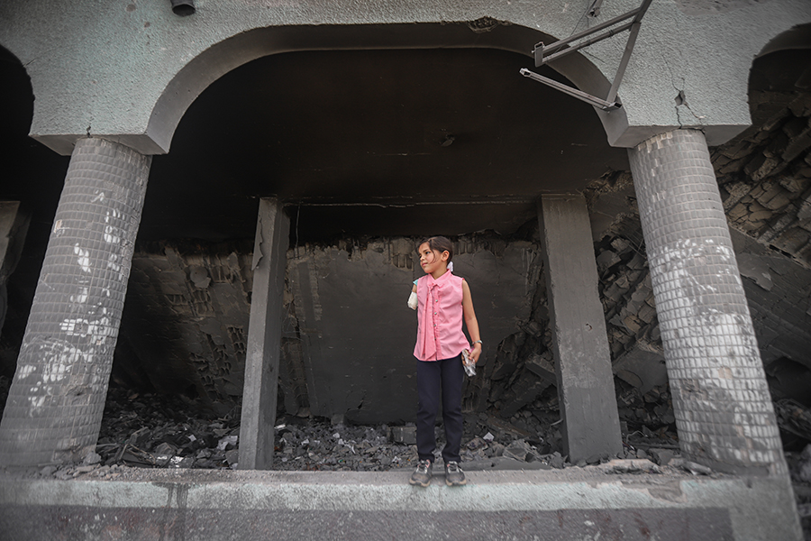 İşgalcilerin Dar el-Erkam Okulu’nu hedef alması sonucu, çocuklarla salıncakta oynarken yaralanan Gade’nin sağ kolu ampute edildi.