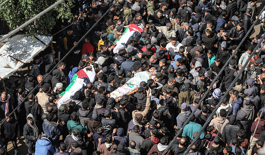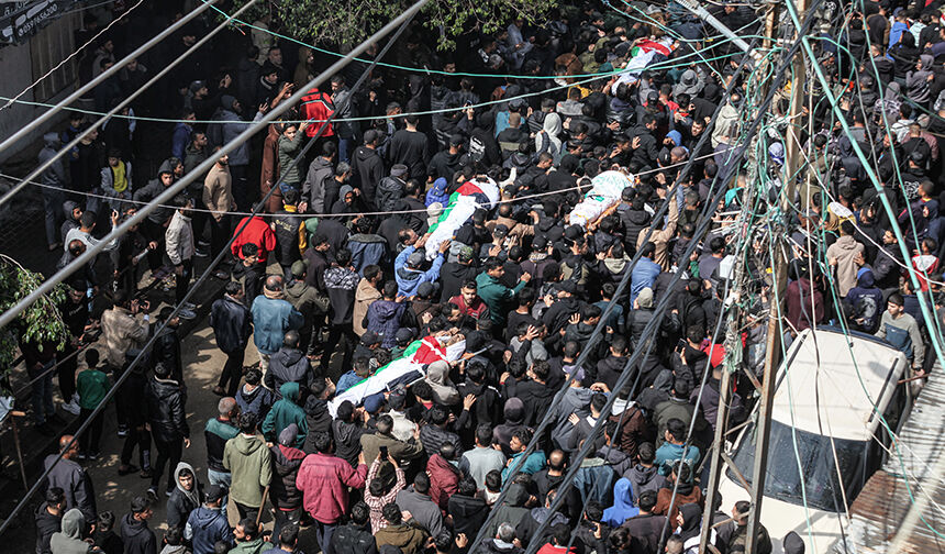 Filistinlilerin naaşları, çok sayıda kişinin katıldığı cenaze töreniyle toprağa verilmek üzere ebediyete uğurlandı.
