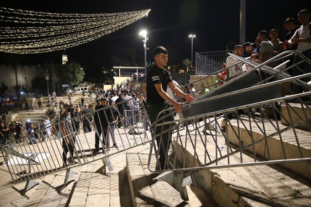 Ramazan ayının başından bu yana Filistinlilerin Mescid-i Aksa'ya girişine engel olan işgalcilerin kurduğu barikatlar yıkıldı.