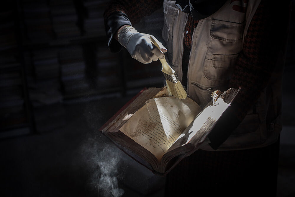 Enkaz altında kalan, yıpranan ve sayfaları zarar gören eserleri titizlikle restore etmeye çalışan gönüllüler, Gazze’nin kültürel, edebi ve bilimsel mirasını korumayı amaçlıyor.