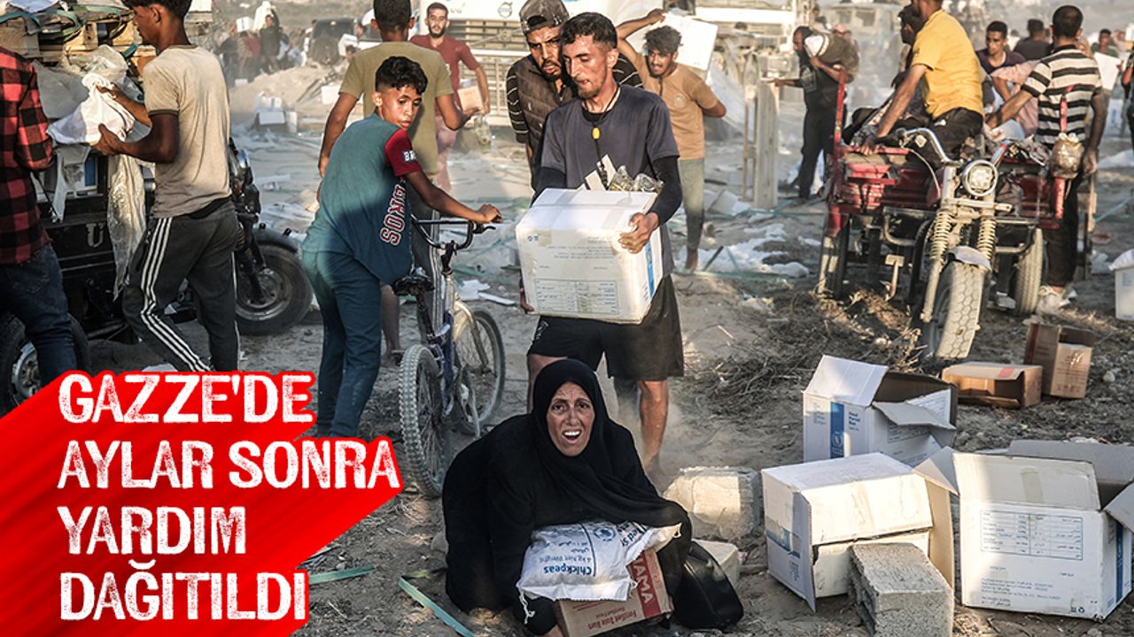 Gazze Şeridi'nin orta kesimindeki Netzarim Koridoru üzerinden ulaştırılan insani yardım tırları, işgalcilerin saldırıları ve ağır insani kriz altında yaşam mücadelesi veren Filistinlilere dağıtıldı.