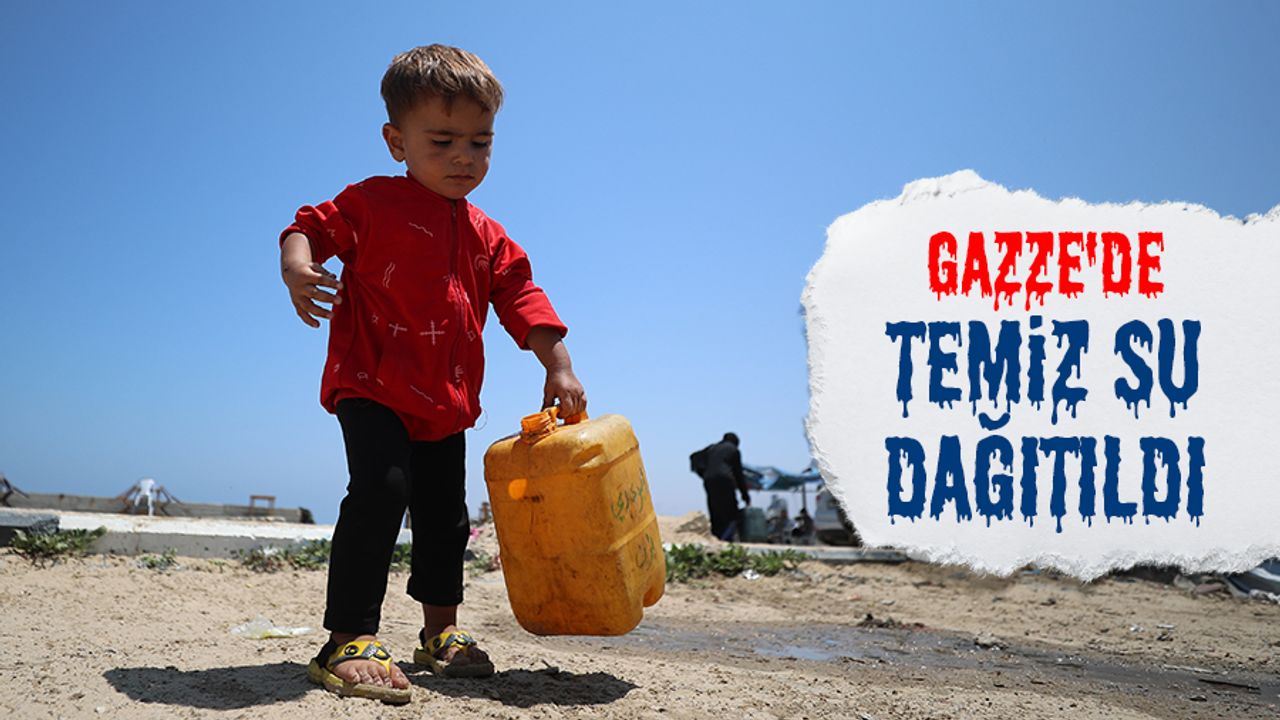 Gazze'de yerinden Filistinliler, günlük su ihtiyaçlarını karşılamak için tankerlerle getirilen suyu bidonlara doldurarak kaldıkları çadırlara taşıyor.