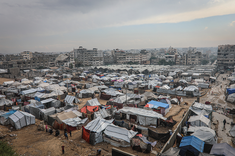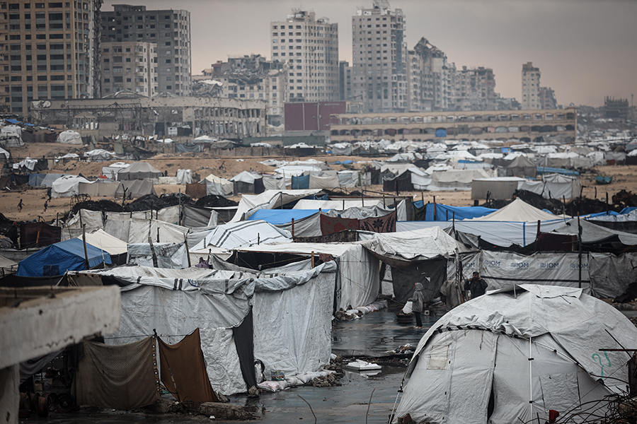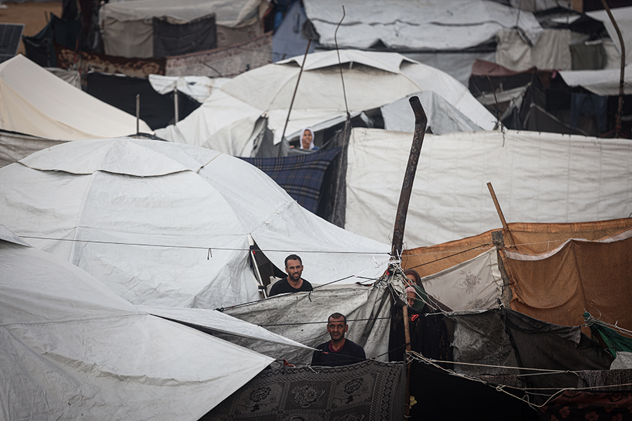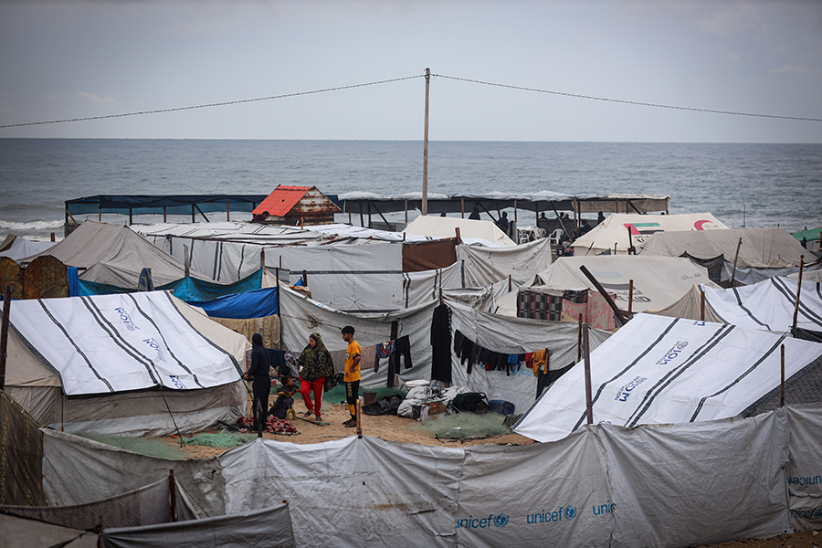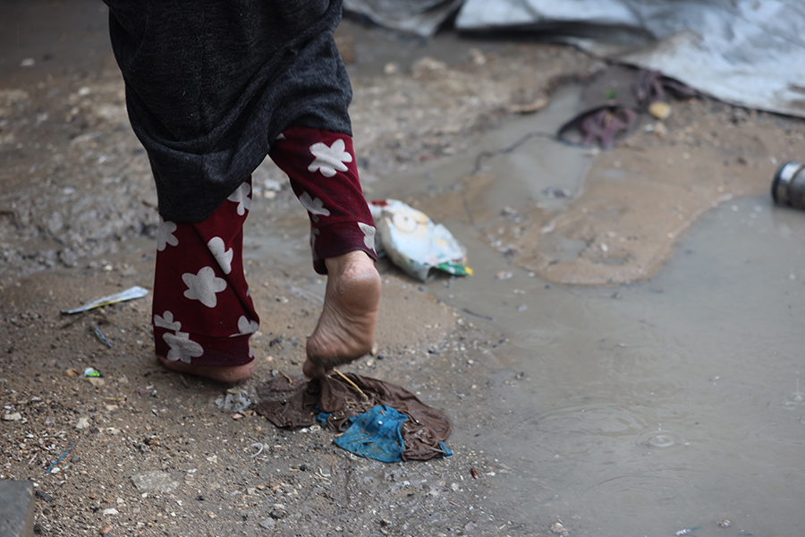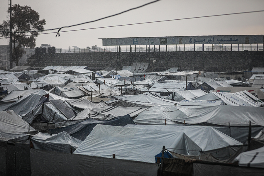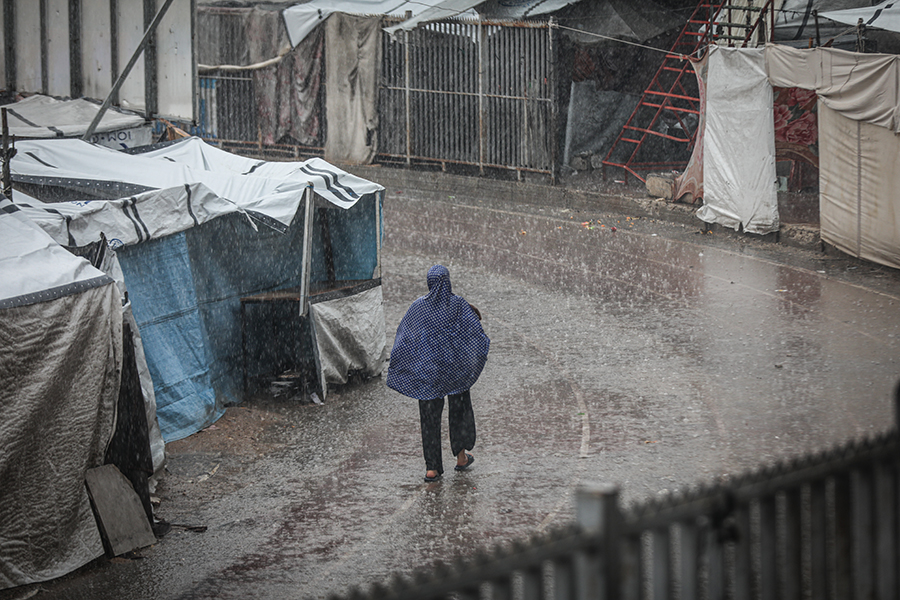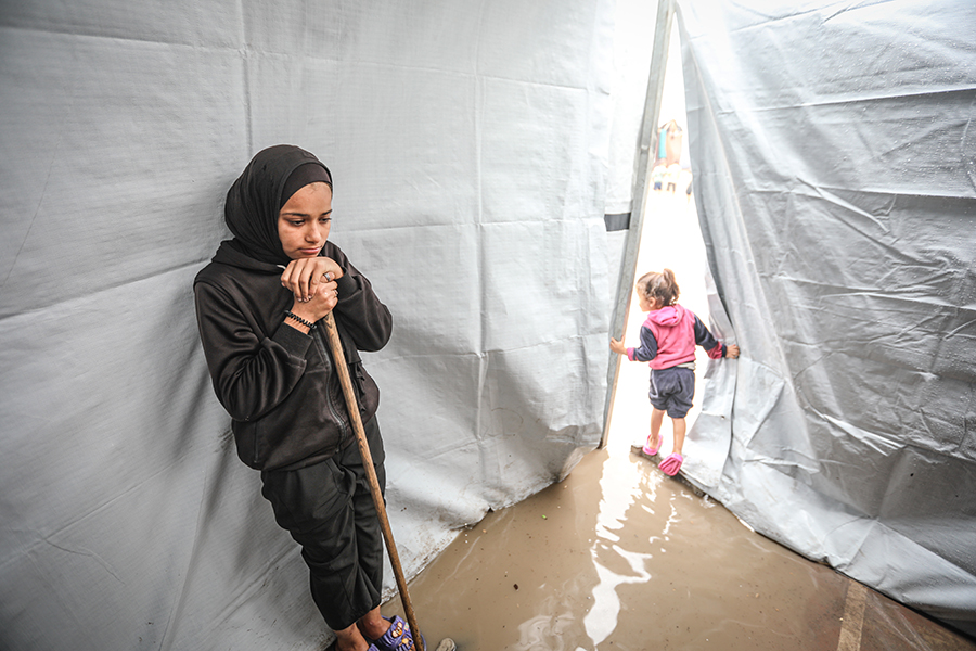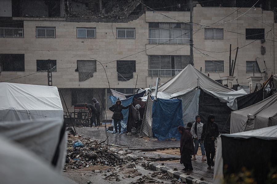 Gazze Şeridi'nde bu sabah yağan yağmur sonrası işgalcilerin 2 yıl süren saldırıları nedeniyle evleri yıkılan Filistinlilerin kaldığı Yermük Kampı'ndaki çadırları su bastı.