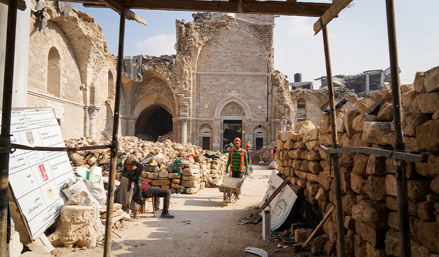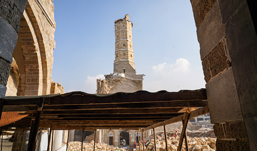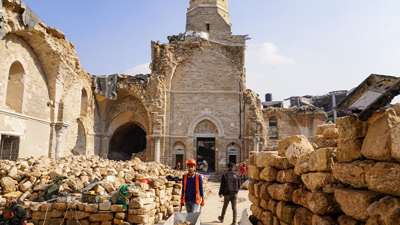 Büyük yıkıma uğrayan camide yenileme çalışmalarına başlandı.
