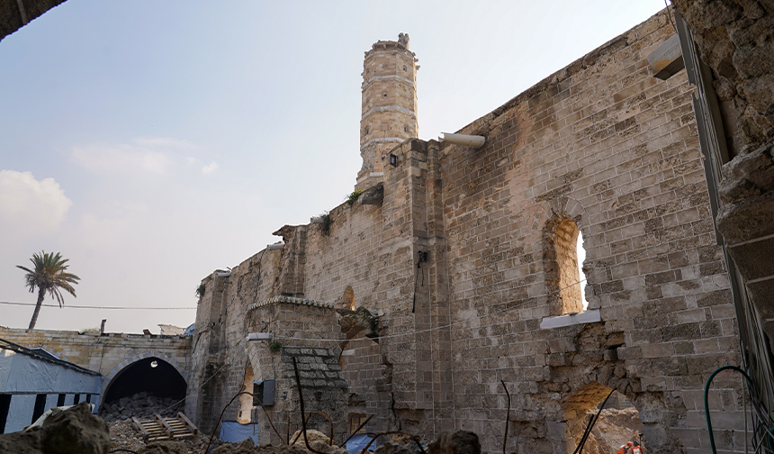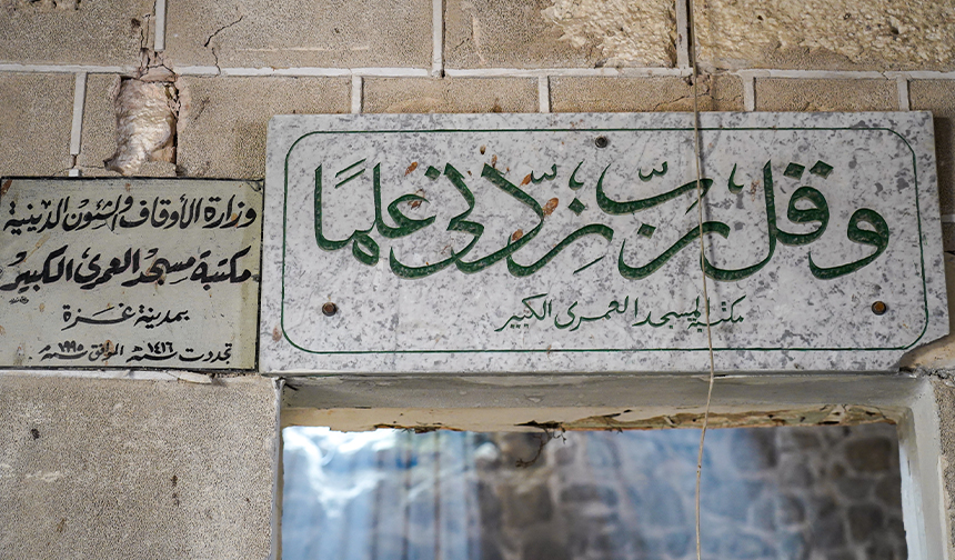 İşgalcilerin Gazze Şeridi'ne yönelik aralıksız sürdürdüğü saldırılar sonucunda Gazze kentindeki Büyük Ömer Camii'nde ağır hasar oluştu.