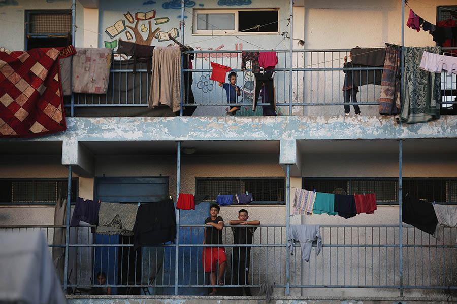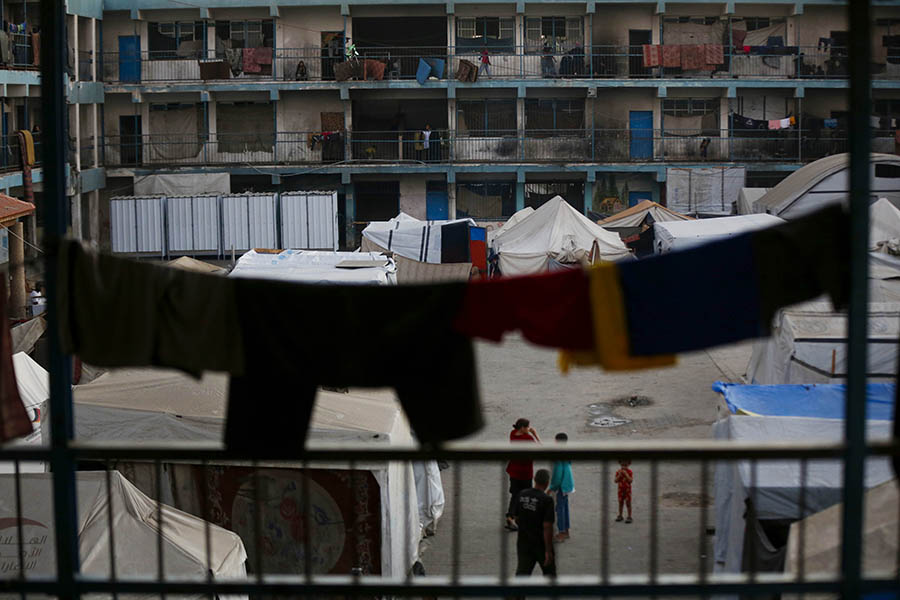 Nüfusun sığındığı okul, çadır kampları ve yüksek katlı binalara yönelik saldırıların gölgesinde, binlerce yerinden edilmiş aileye geçici barınak sağlıyor.
