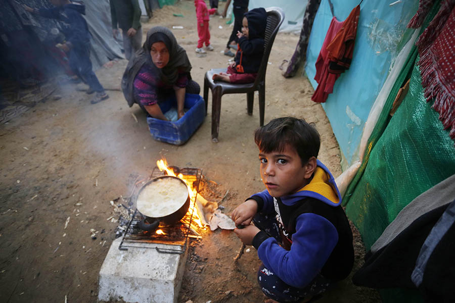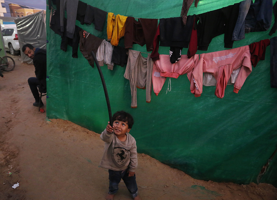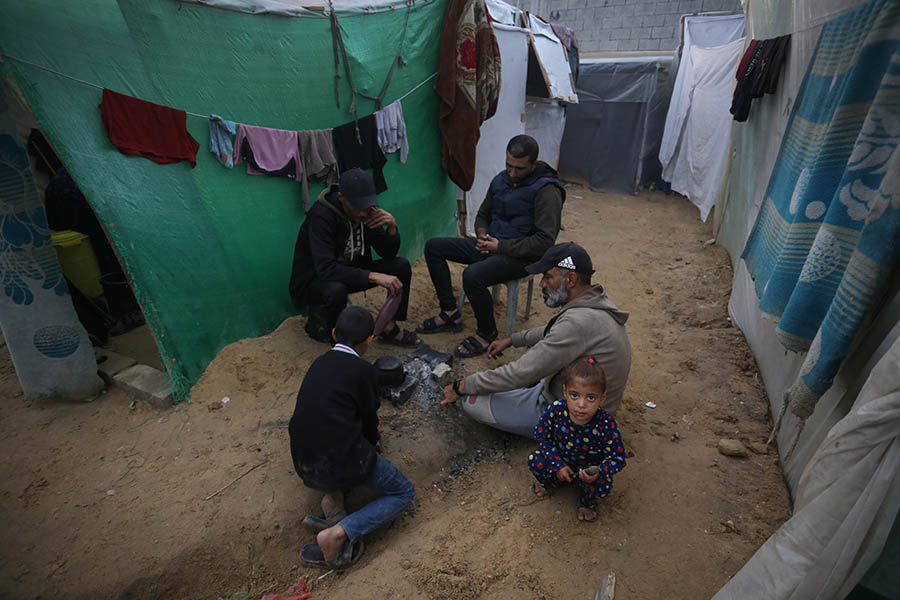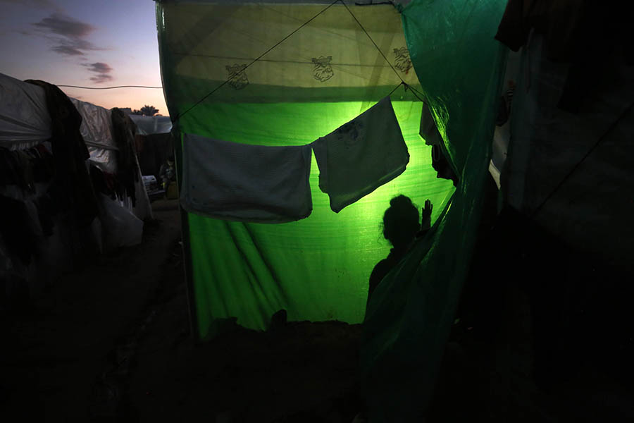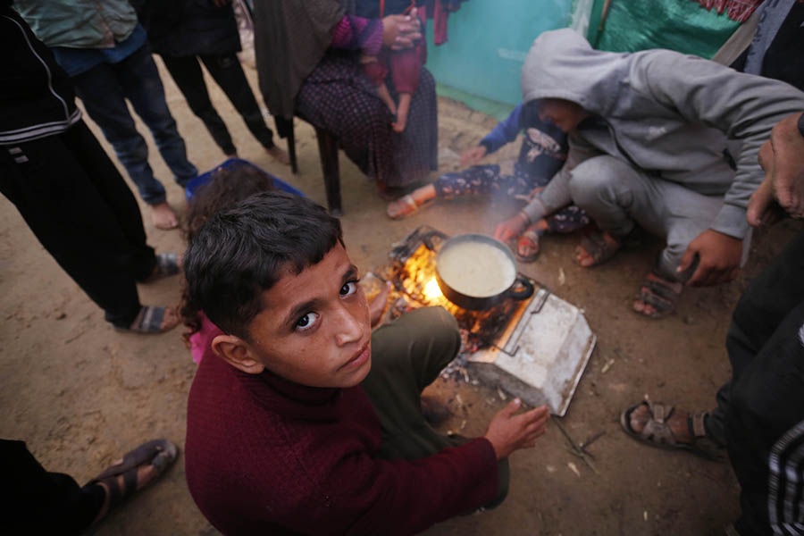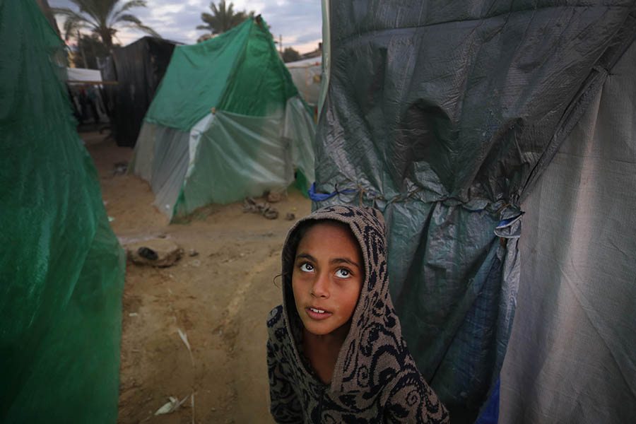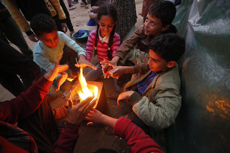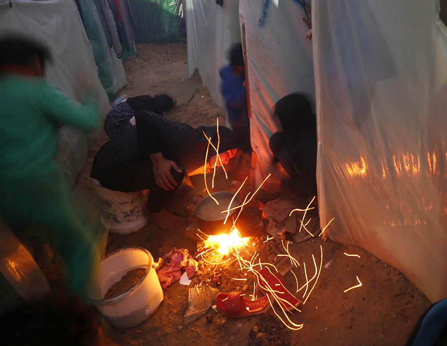 Katil İsrail'in bombardımanından korunmak için evlerini terk edip Deyr Belah kentine sığınan Filistinli aileler, derme çatma çadırlarda soğuk hava şartlarıyla mücadele ediyor.