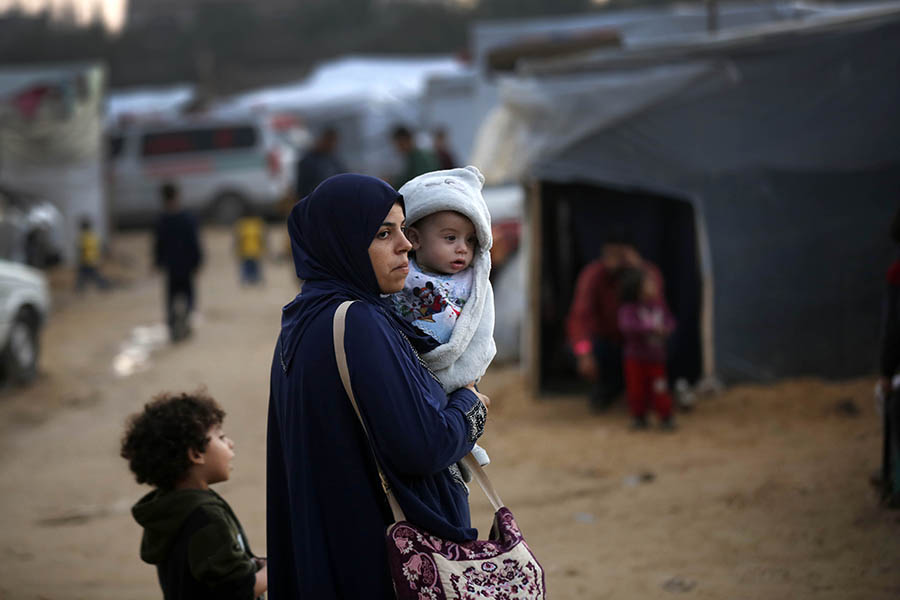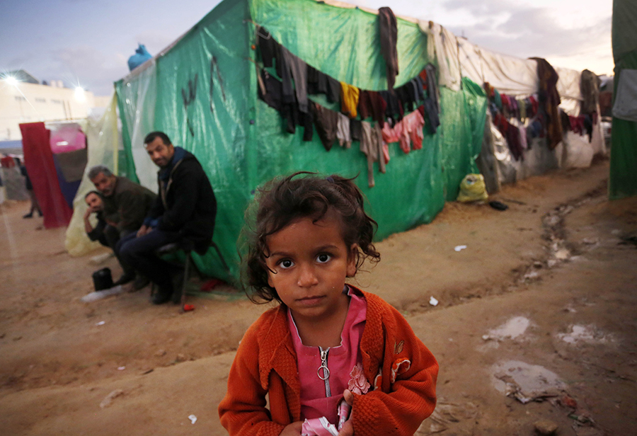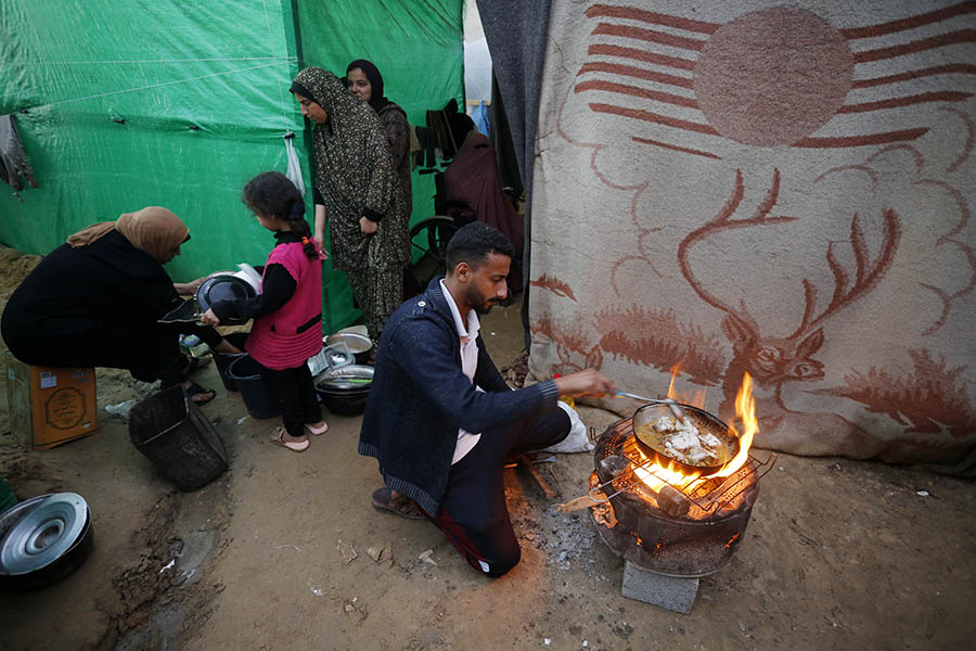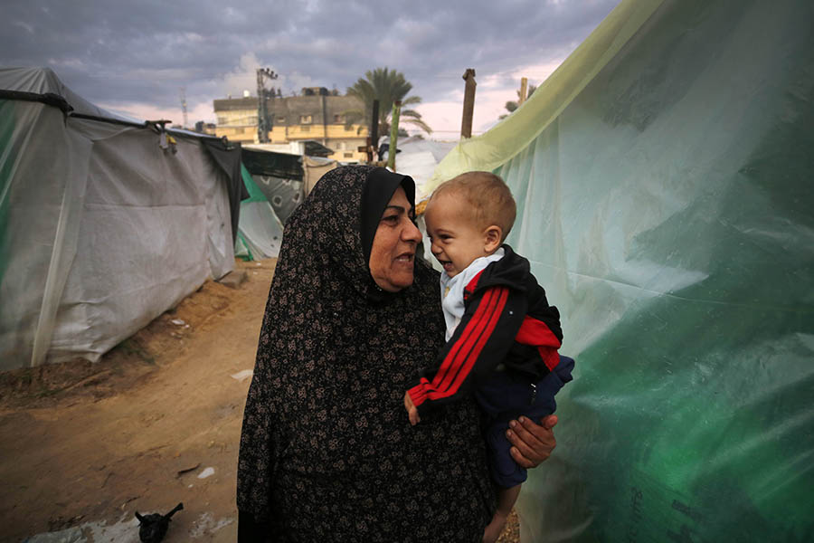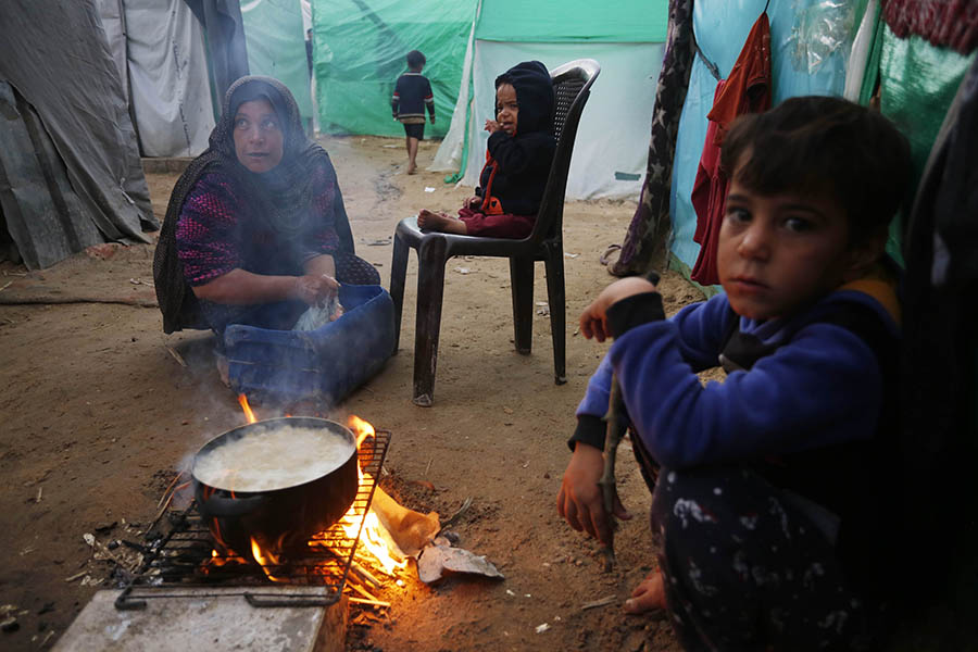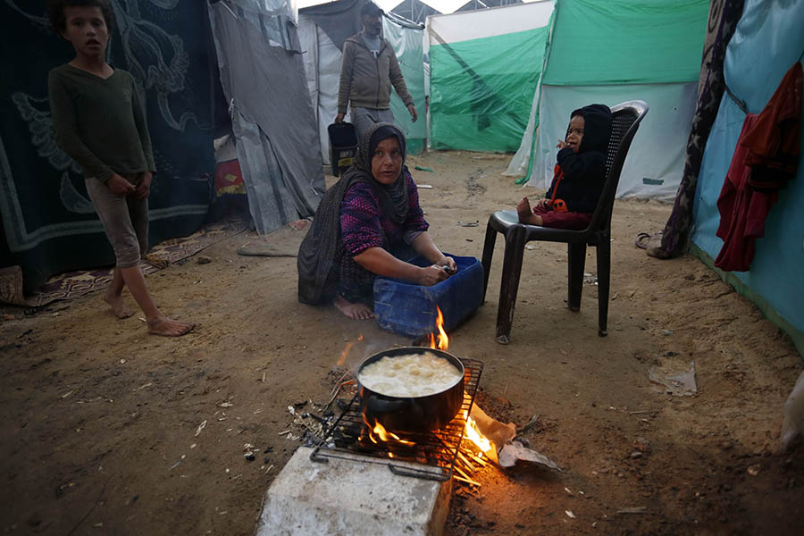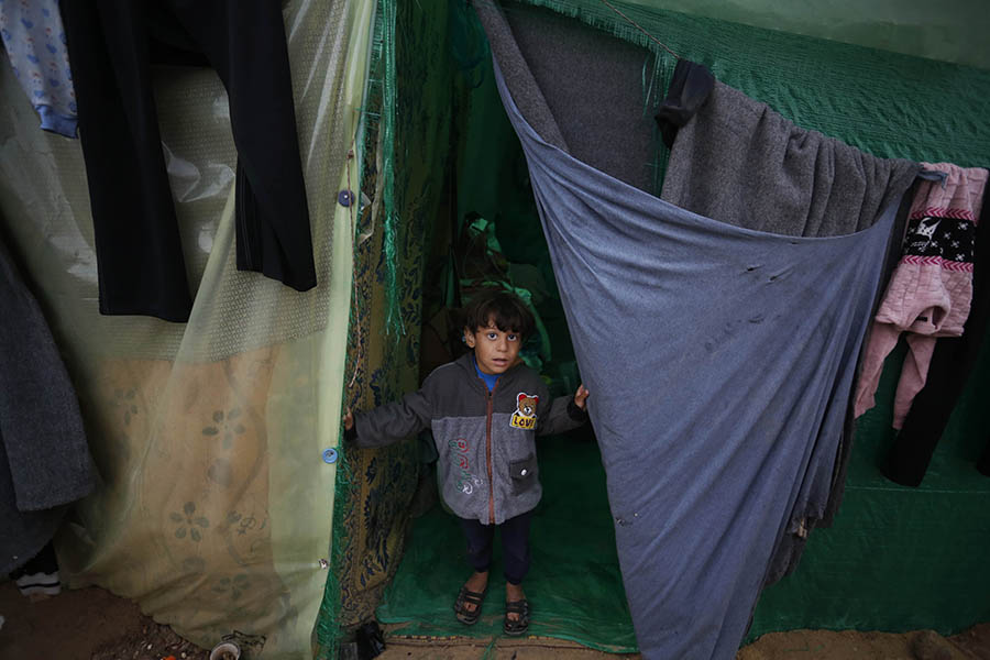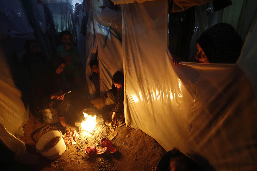 Katil İsrail'in bombardımanından korunmak için evlerini terk edip Deyr Belah kentine sığınan Filistinli aileler, derme çatma çadırlarda soğuk hava şartlarıyla mücadele ediyor.