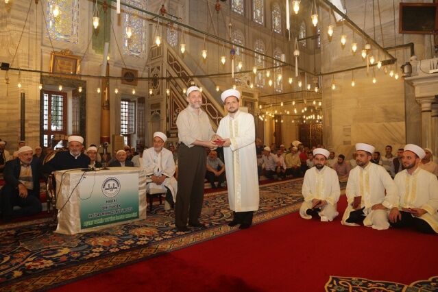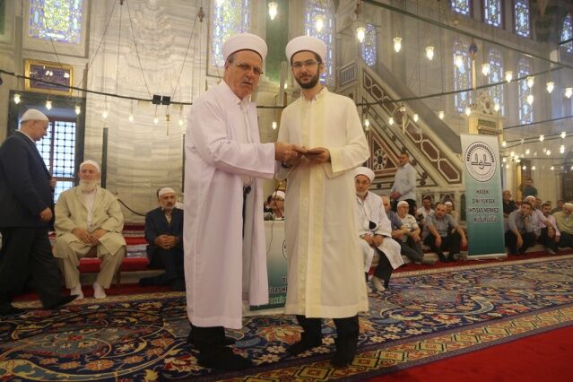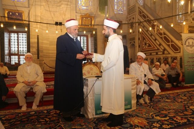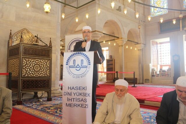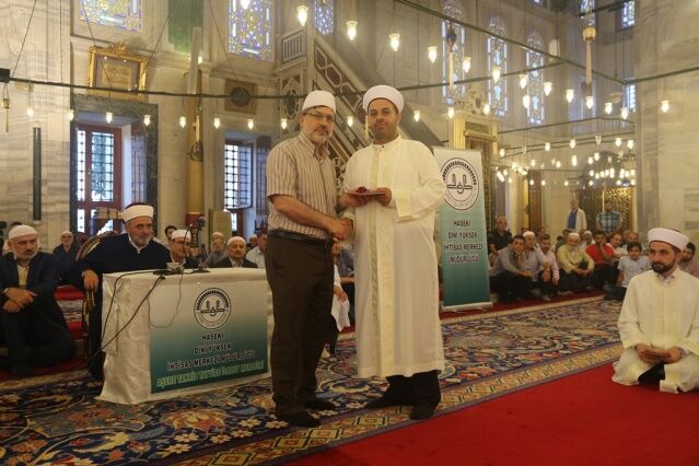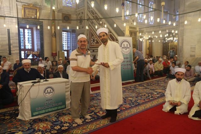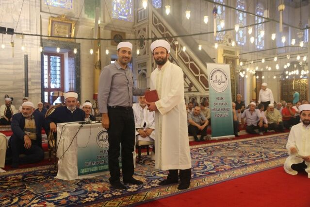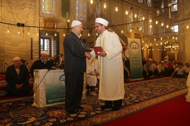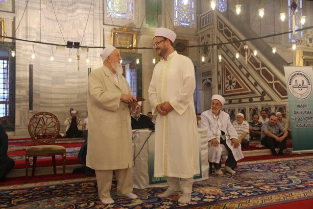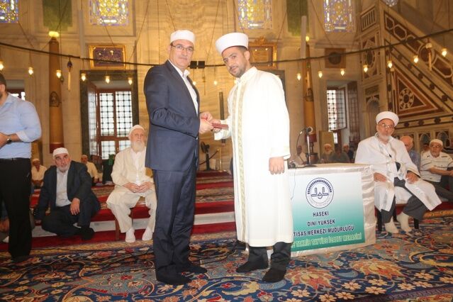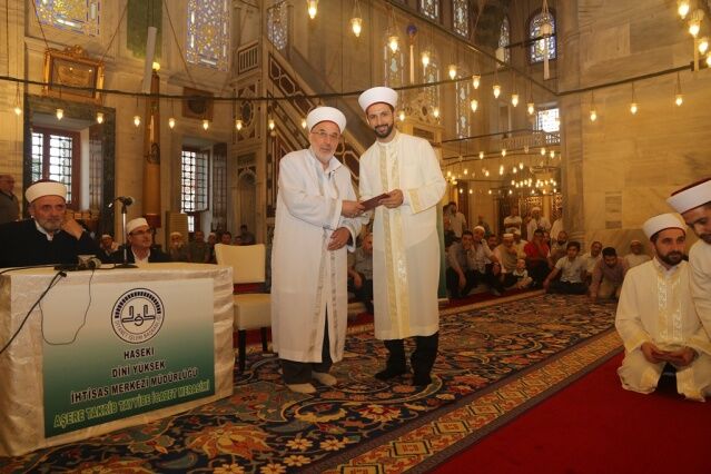 İcazet programına iştirak eden Mushafları İnceleme ve Kıraat Kurulu Başkanı Hâfız Osman ŞAHİN ise, “Haseki Eğitim Merkezimizin Aşere-Takrib-Tayyibe icâzet merasimi vesilesiyle bugün burada bir cemiyet icra ediyoruz. Rabbim bu cemiyetlerin sayısını ve kalitesini arttırsın. Kur’ân’la şereflenmiş bu milleti Kur’ân hizmetinde daim kılsın inşallah. Diyanet İşleri Başkanlığımızın Kur’ân hizmetleri gün geçtikçe artarak devam ediyor. 4-6 yaş eğitiminden tutun, yaz Kur’ân Kursları ile Hâfızlık yaptıran Kur’ân Kurslarımızda, yediden yetmişe herkese Kur’ân hizmeti sunulmaktadır. Geçmişte yaşanan acı günleri, Kur’ân okumanın yasak olduğu günleri rabbim bir daha bu millete göstermesin. Bugün hamdolsun yüzkırkbin’e yaklaşan tescilli hâfızımız var. Kurra hâfızlarımızın sayısı da bin’i geçti.” dedi.