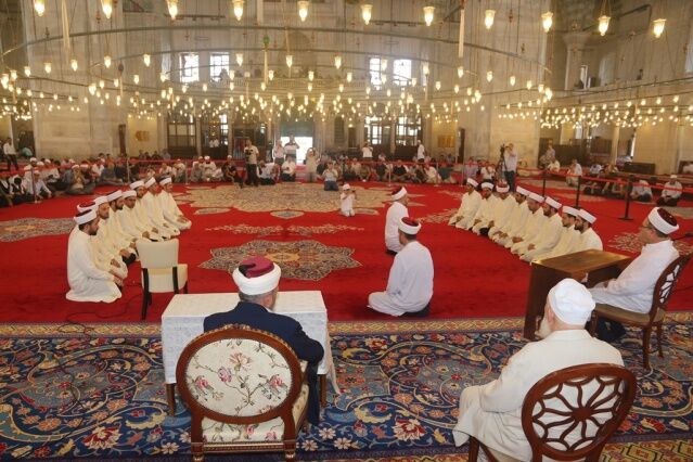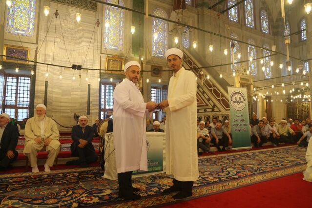 Reîsü’l-Kurra’ya vekâleten Kurra Hâfız Mustafa DEMİRKAN Hoca’nın riyasetinde ve Haseki Dini Yüksek İhtisas Merkezi Kıraat Bölümü hocalarının (Ramazan Pakdil, Talip Akbal, Murat Sefiloğlu, İbrahim Çavdar, Mahmut Ercan, Mehmet Kılıç) nezaretinde icâzet alan 16 Kurra Hâfız’ın hatim tertibine geçildiğinde misafir katılımcılar duygulu anlar yaşadı. İcazetnameler ve hediye takdimleriyle birlikte program sona erdi.