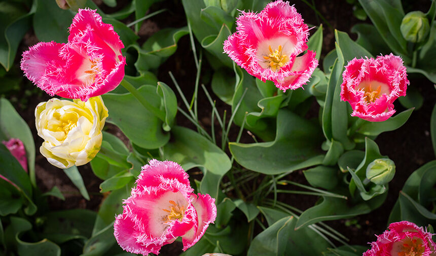 Hazırlıkların aylarca sürdüğü bahçede, laleler en güzel şeklini nisan ortasında alıyor.