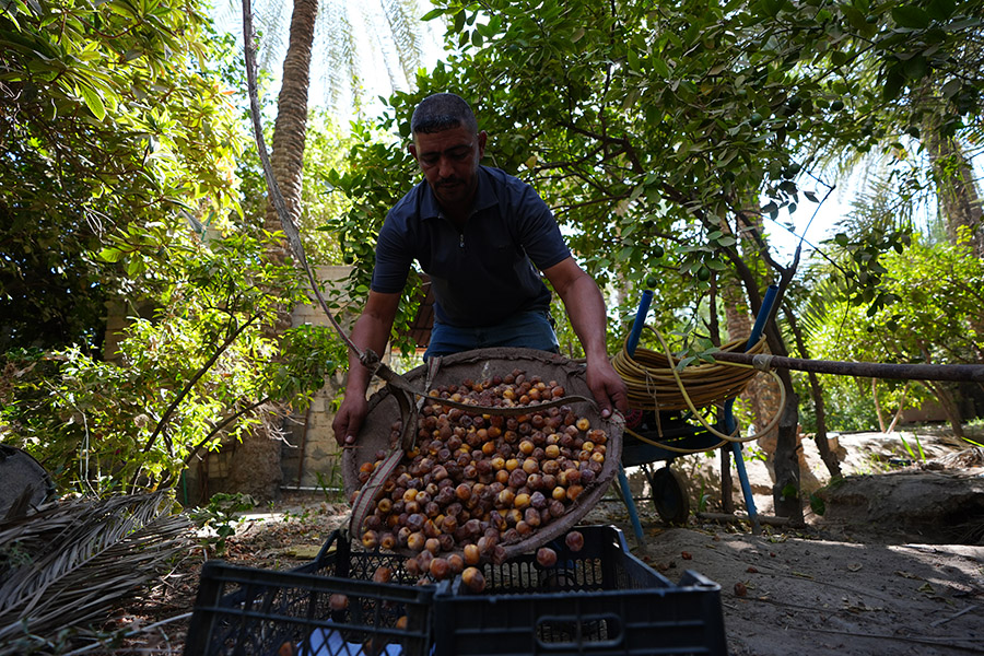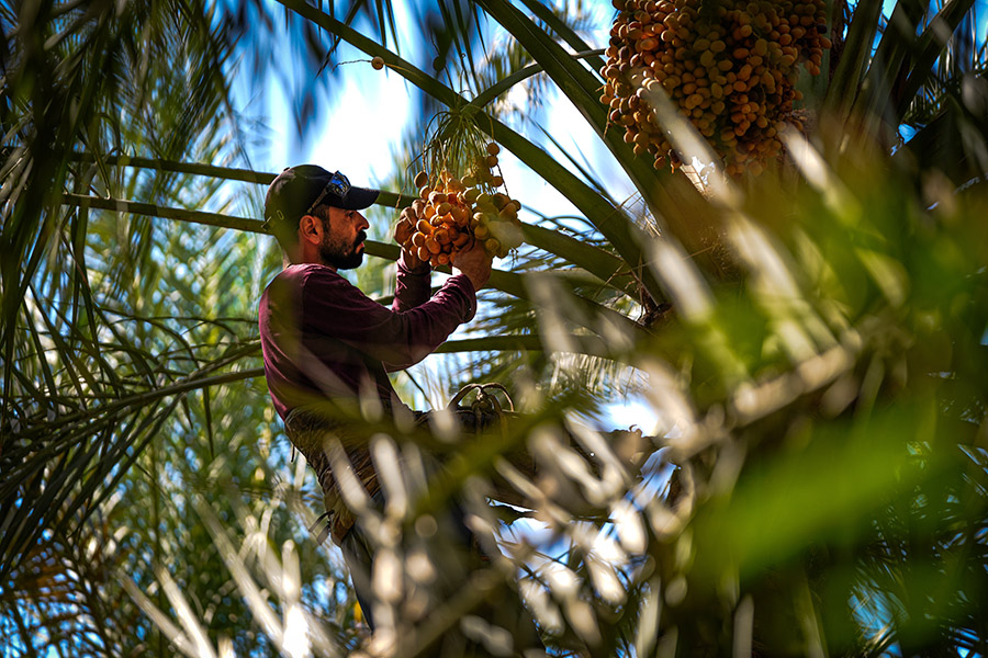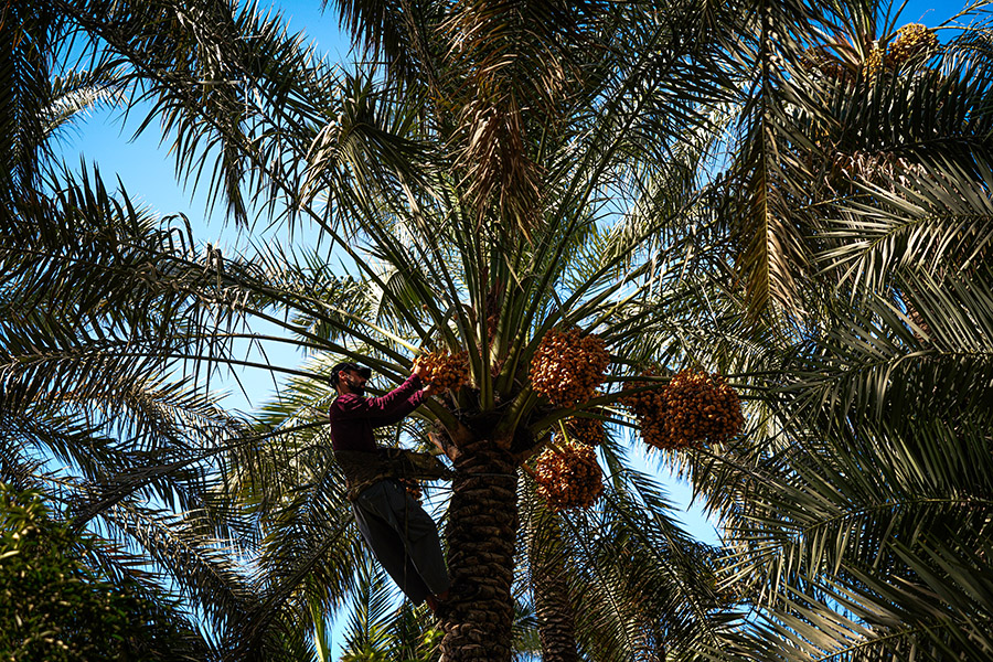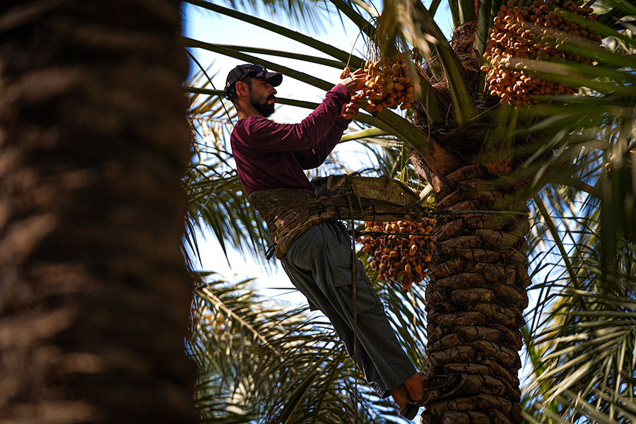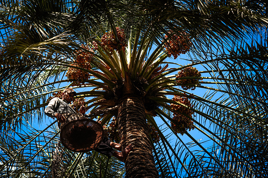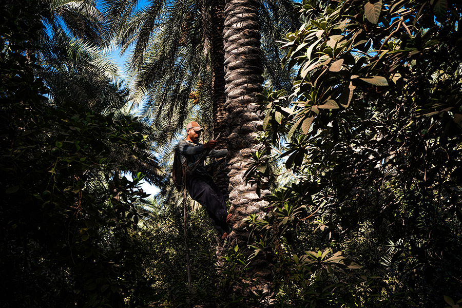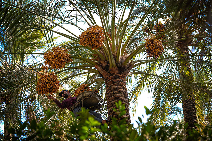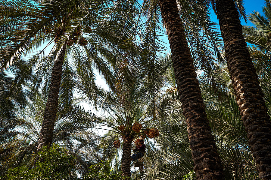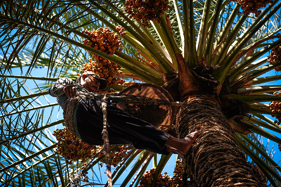 "Hurma mevsimi kış aylarından başlar. Kış ayında toprağı temizleriz ve palmiye işçiliğine başlarız. Palmiye ağaçlarını mart ayında ise aşılamaya başlarız. Haziran ayında hurma salkımını taşıyan dalı veya sapını aşağıya çekeriz. Bu dallar ağustos ayından itibaren koparılmaya veya toplanmaya hazır hale gelir."