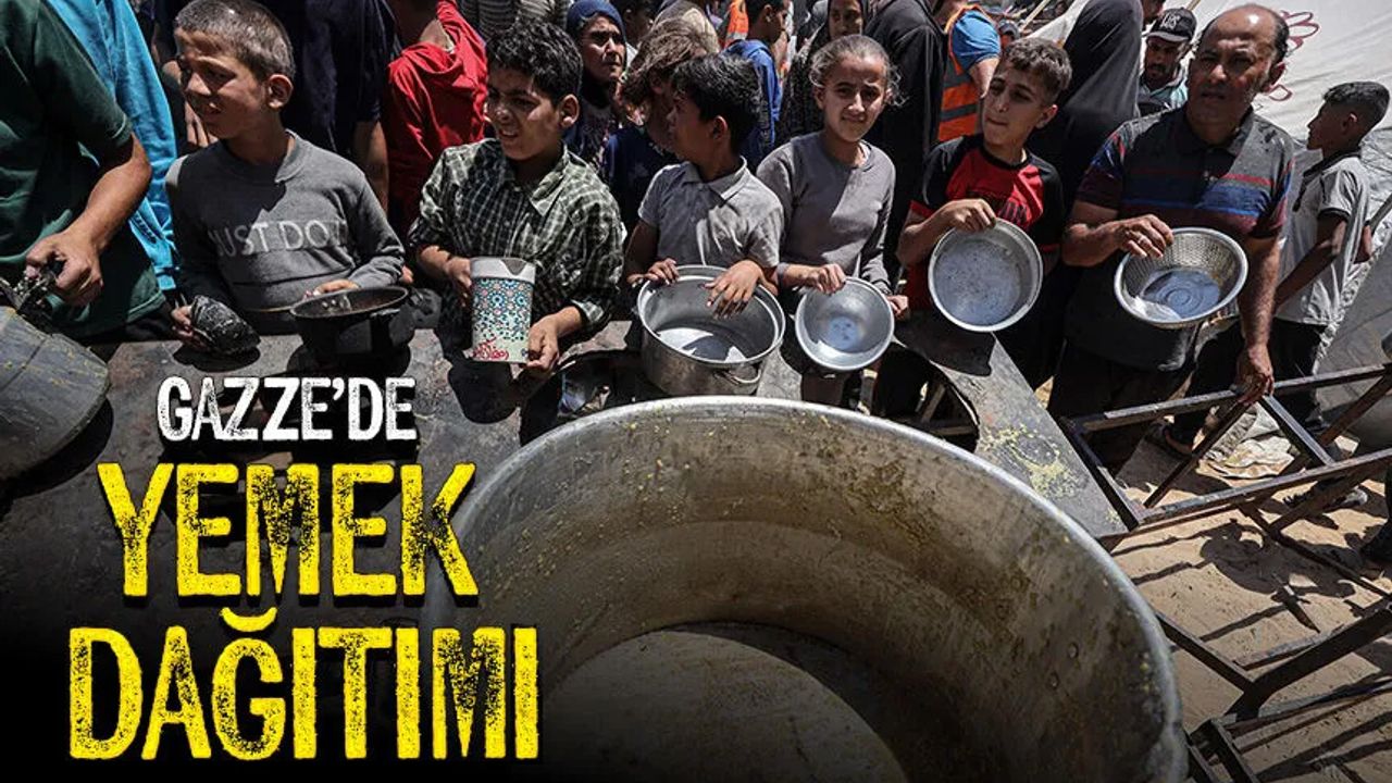Gazze Şeridi'nin kuzeyindeki Gazze kentinde yaşayan Filistinlilere hayır kurumları tarafından yemek dağıtımı yapıldı.