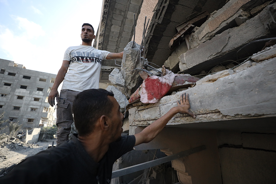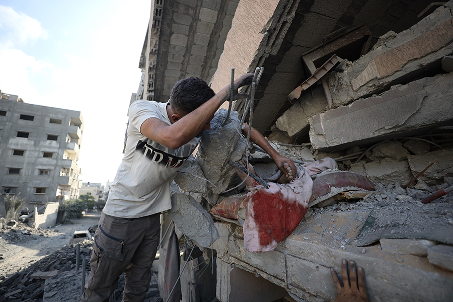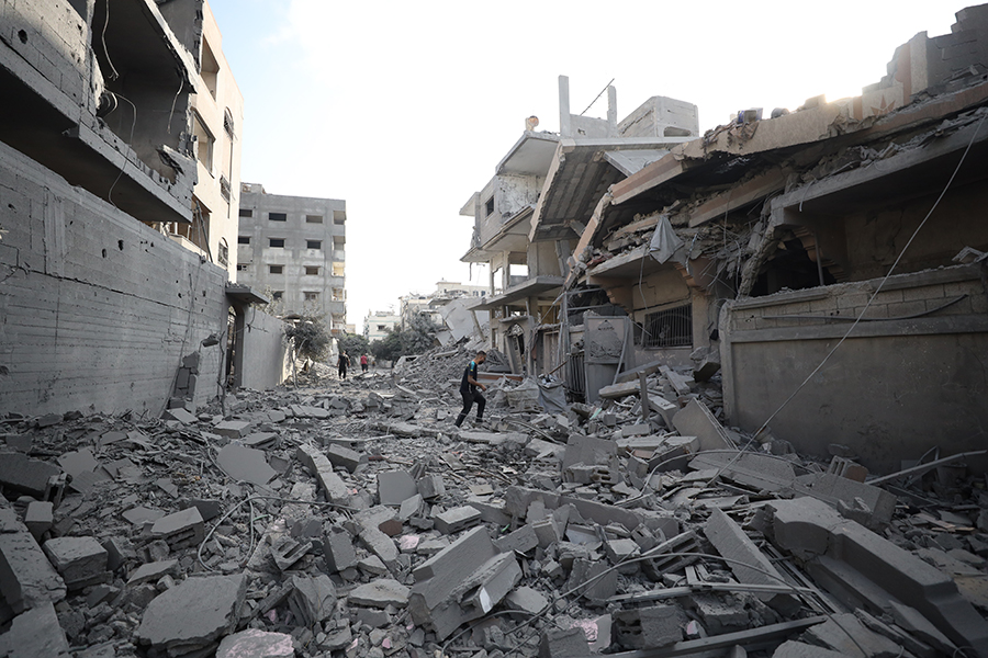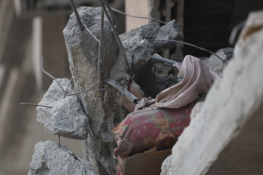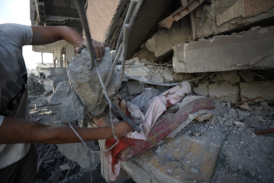 Enkaz altında kalan Filistinlilere ulaşılamazken, bölgede büyük yıkım meydana geldi.