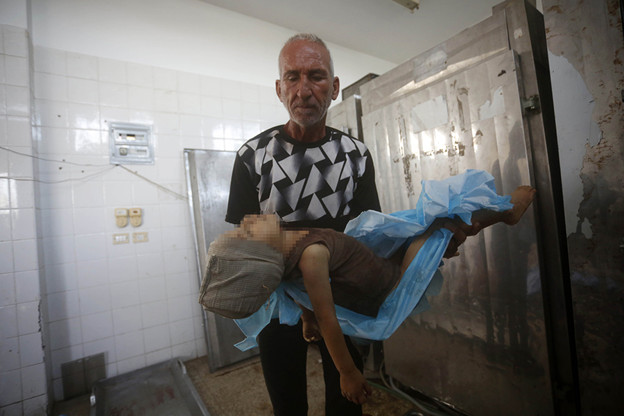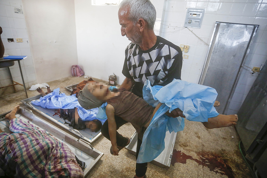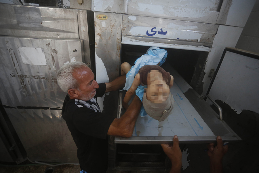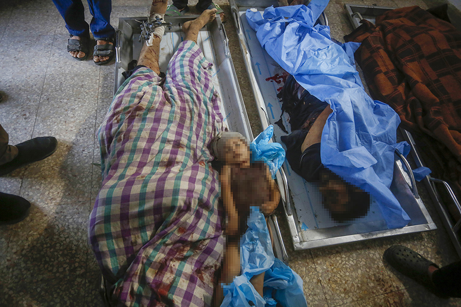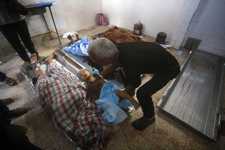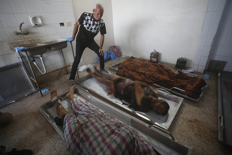 Şehit olanların naaşları, cenaze işlemleri için Deyr Belah kentindeki Aksa Şehitleri Hastanesi'ne getirildi.