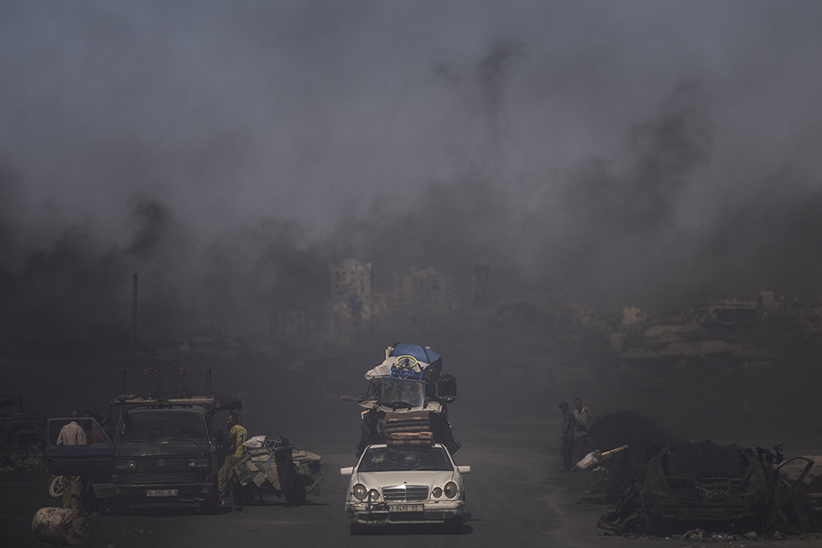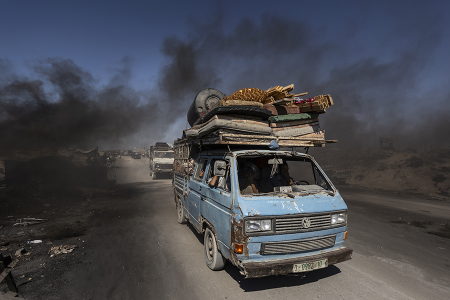 Bölge halkı, araçlarla, at arabalarıyla ve yaya olarak yanlarına alabildikleri eşyalarla birlikte er-Raşid Caddesi üzerinden Gazze'nin orta kesimine doğru ilerdi.