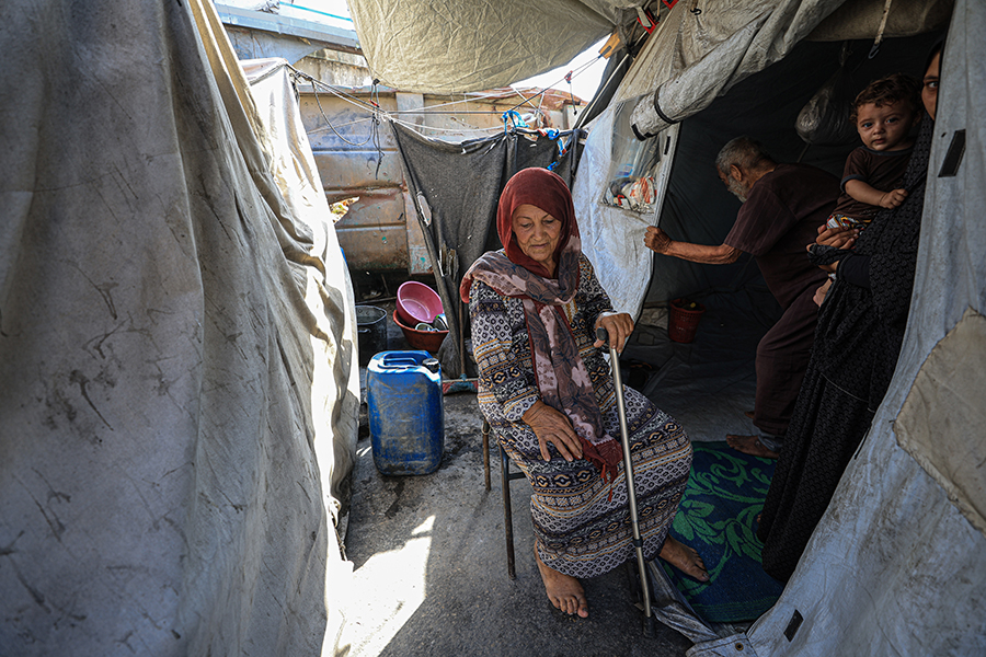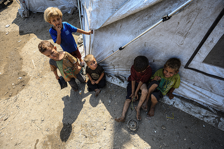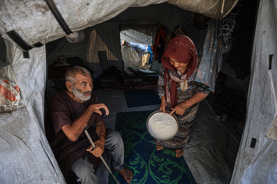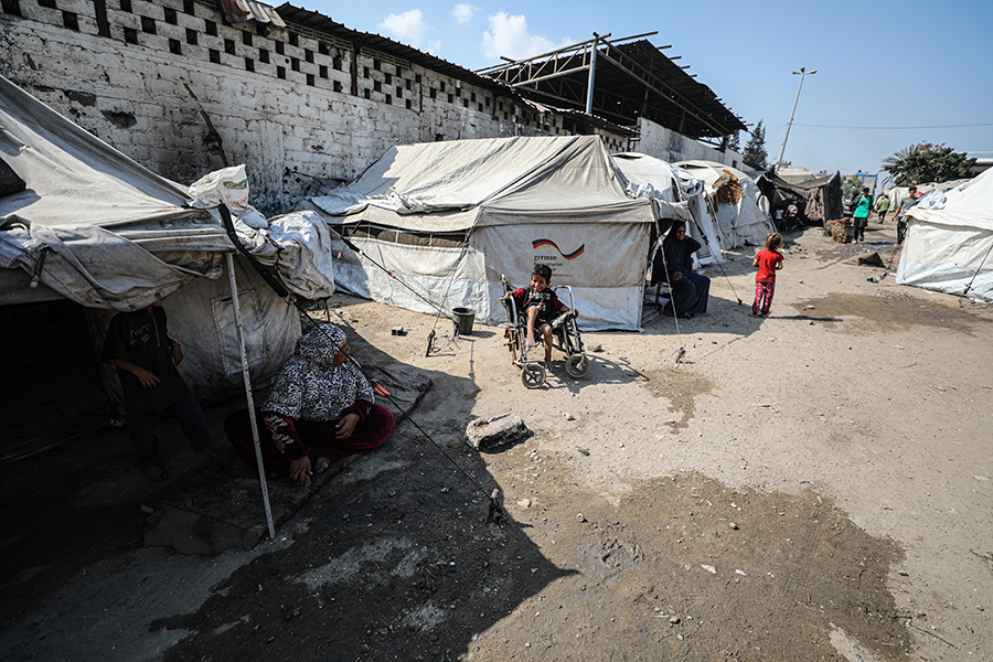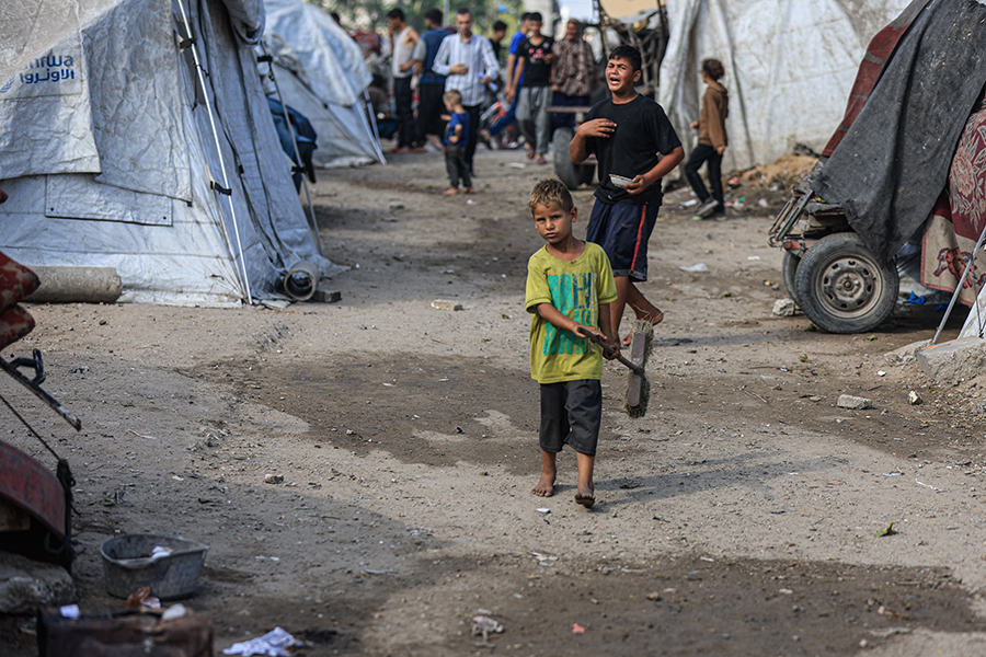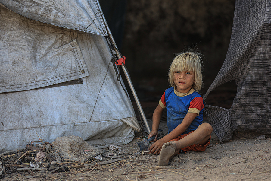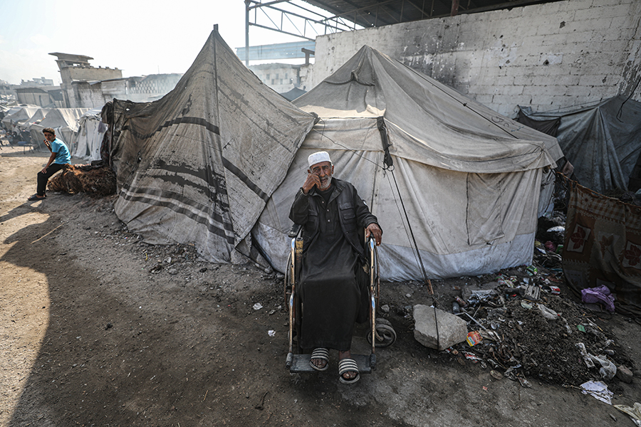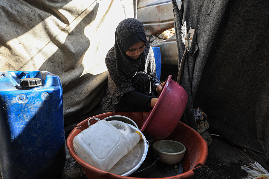 Gazze kentindeki Yermük Kampı'nda derme çatma çadırlarda yaşayan Filistinliler, gıda, su ve diğer temel ihtiyaçlarını temin etmek için her gün mücadele veriyor.