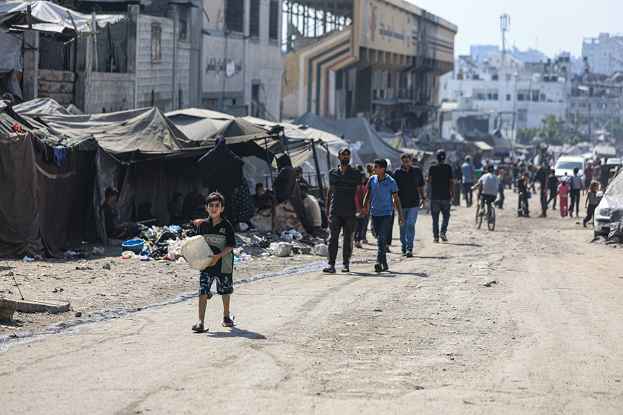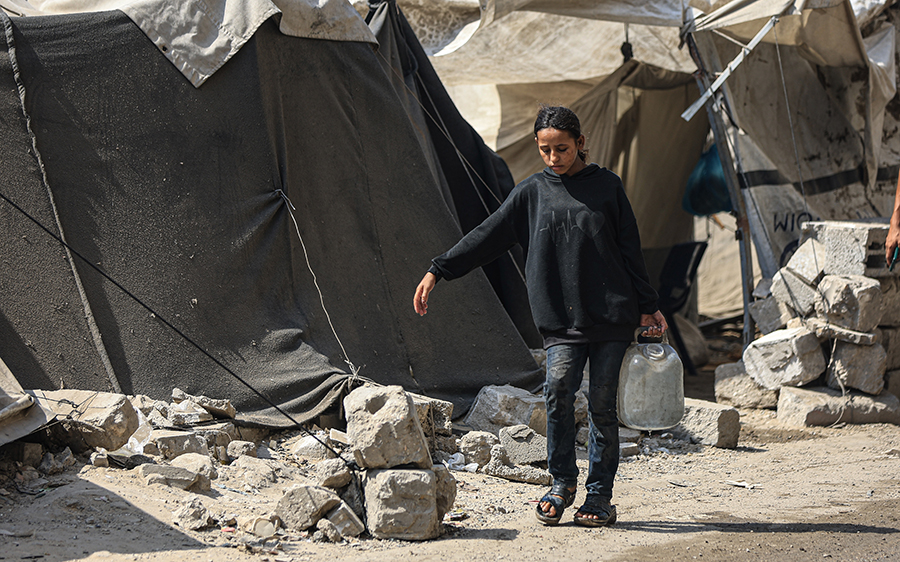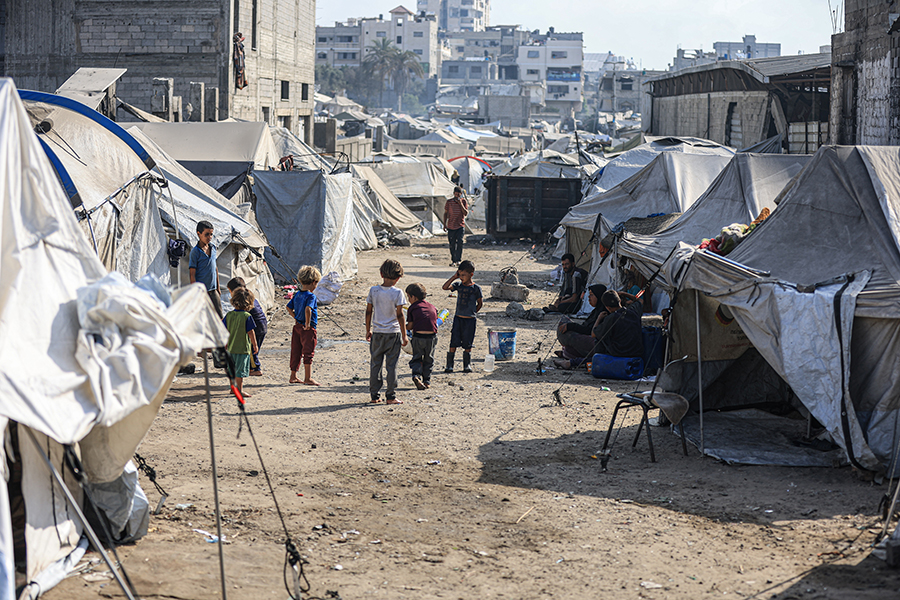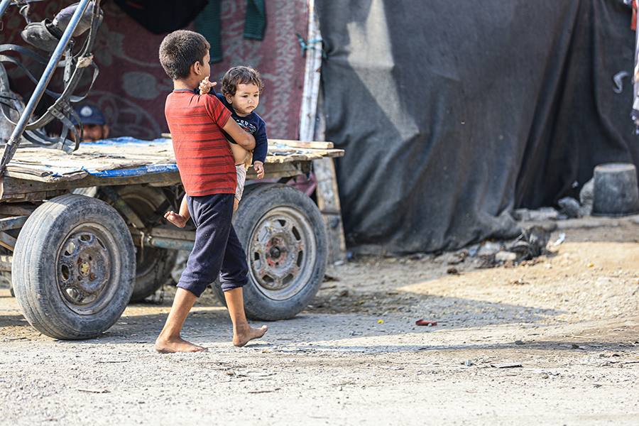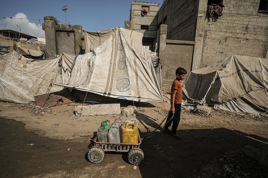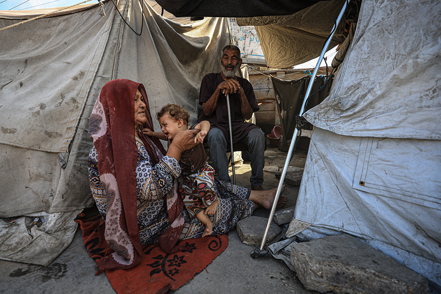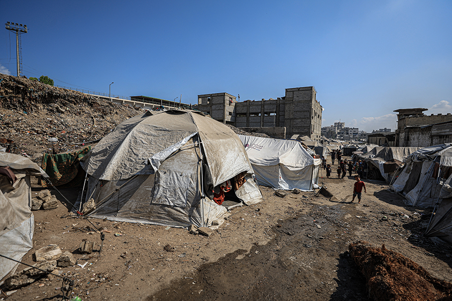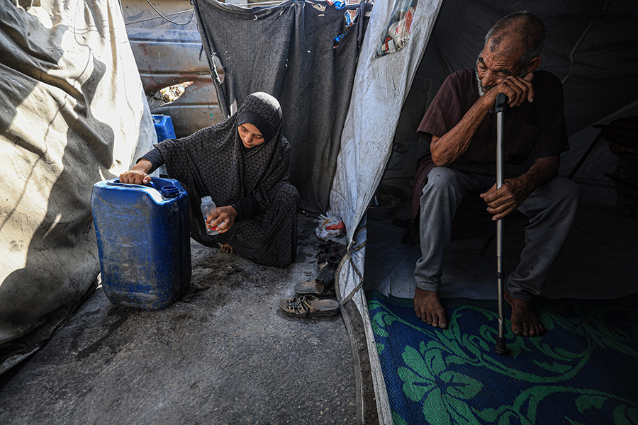 Gazze kentindeki Yermük Kampı'nda derme çatma çadırlarda yaşayan Filistinliler, gıda, su ve diğer temel ihtiyaçlarını temin etmek için her gün mücadele veriyor.