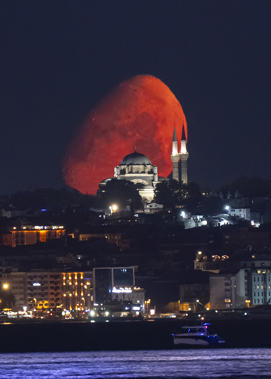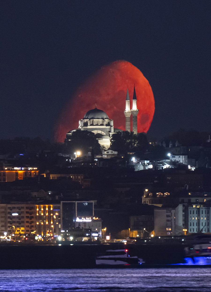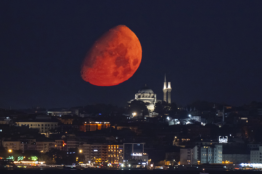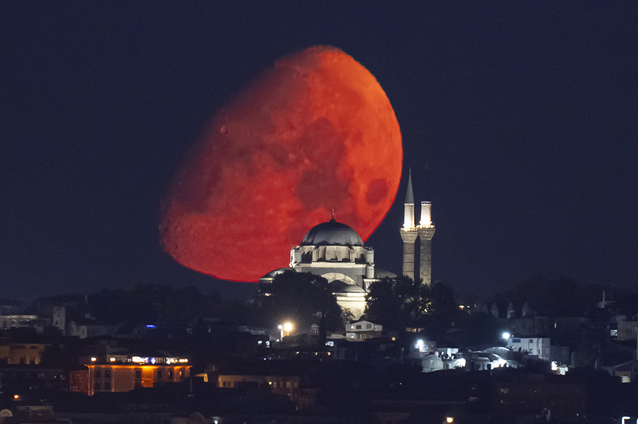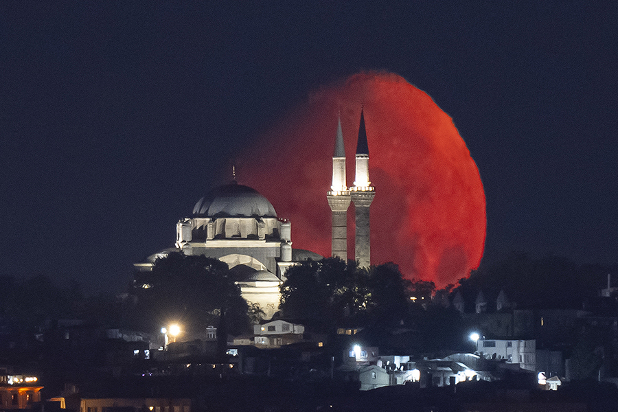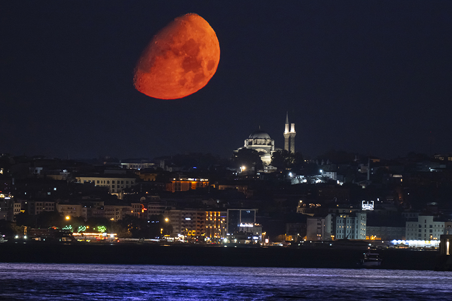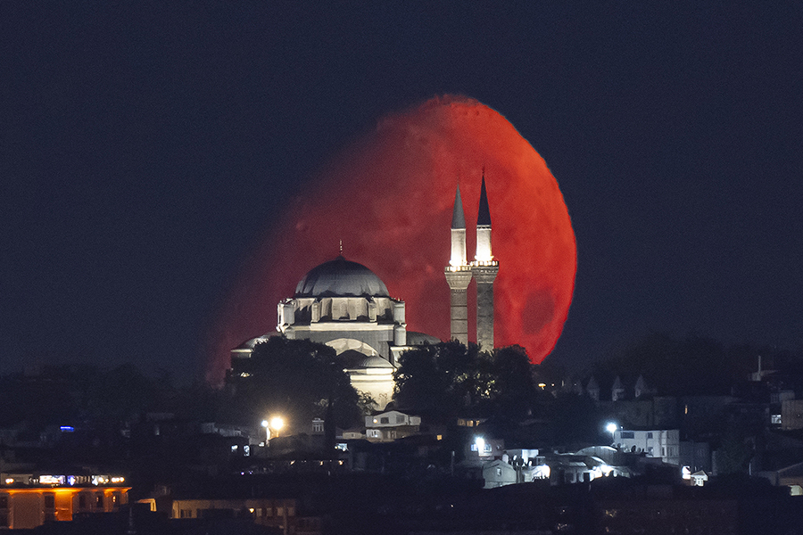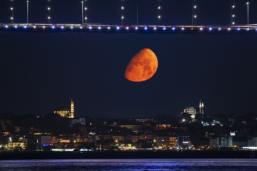 İstanbul'da Ay, Beyazıt Camii ile birlikte görüntülendi.