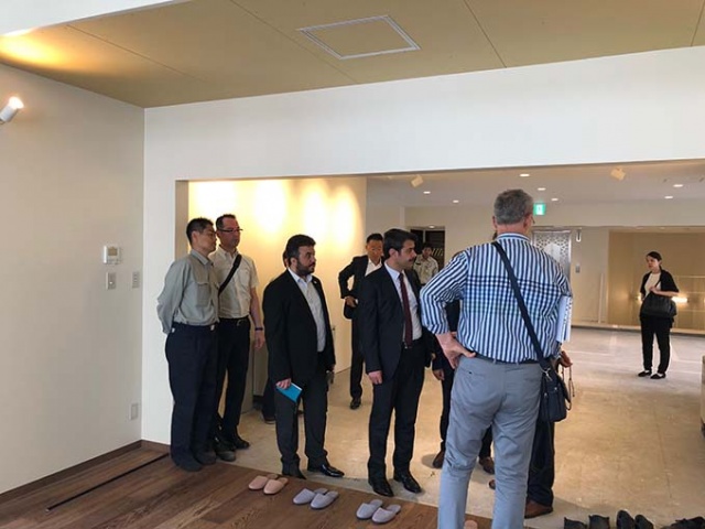 İçerisinde kütüphane, araştırma merkezi, sınıflar, konferans salonu, kıraathane ve benzeri mekanların yanı sıra sosyal ve kültürel içerikli din hizmeti faaliyetlerine dönük ünitelerin de olacağı merkez, Tokyo Camiinin Japonya’daki konumuna değer katacak. Külliye Açılışa Hazır Diyanet İşleri Başkanlığı ile Dünya Müslüman Topluluklarla Dayanışma Vakfı (MÜSDAV) işbirliğiyle yapılan Kültür Merkezinin açılış öncesi son kontrolleri tamamlandı. Diyanet İşleri Başkanlığı Yönetim Hizmetleri Genel Müdürü ve MÜSDAV yönetim kurulu üyesi Haydar Bekiroğlu ile Diyanet İşleri Başkanlığı mimarlarından Muhammet Korkmaz ve Tokyo Camii İmam-Hatibi Muhammed Raşit Alas, yüklenici firma ve müşavir firma yetkilileriyle kapsamlı bir toplantı yaparak detaylar üzerinde müzakerelerde bulundular. İncelemelerin ardından heyet T.C. Tokyo Büyükelçisi Sayın Hasan Murat Mercan’ın, kendileri onuruna Büyükelçilik’te vermiş oldukları akşam yemeğine katıldı.