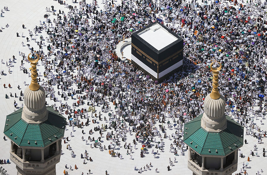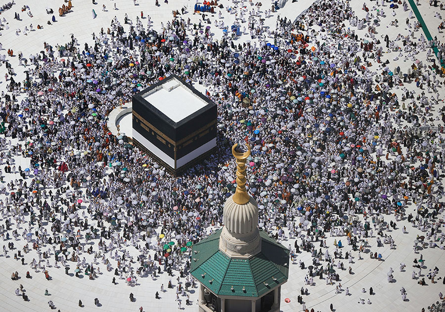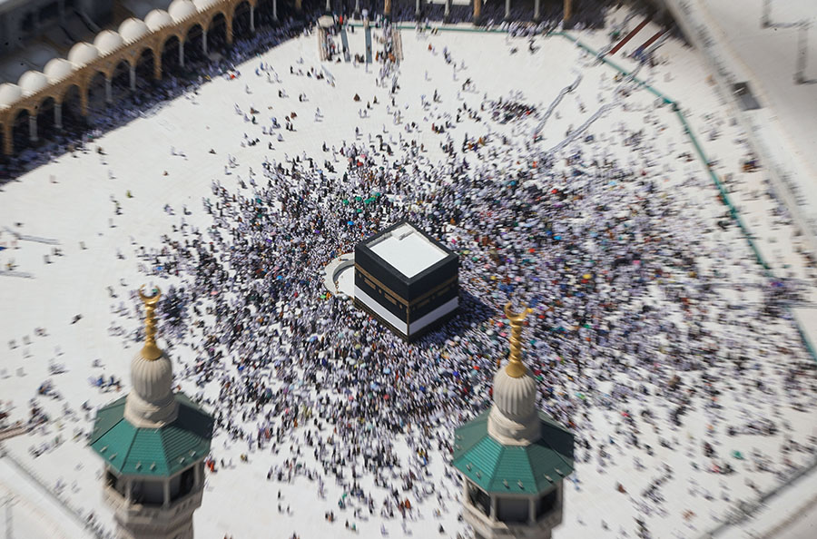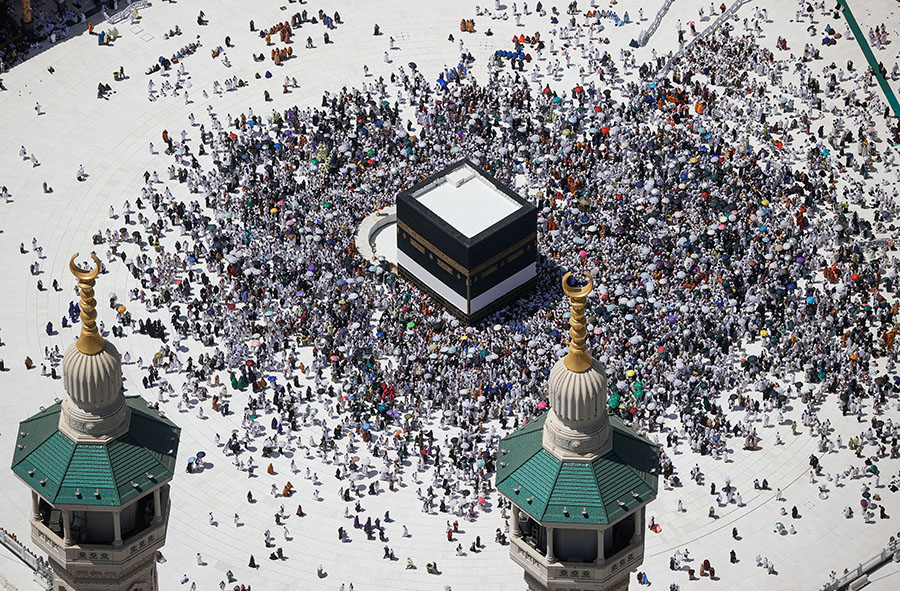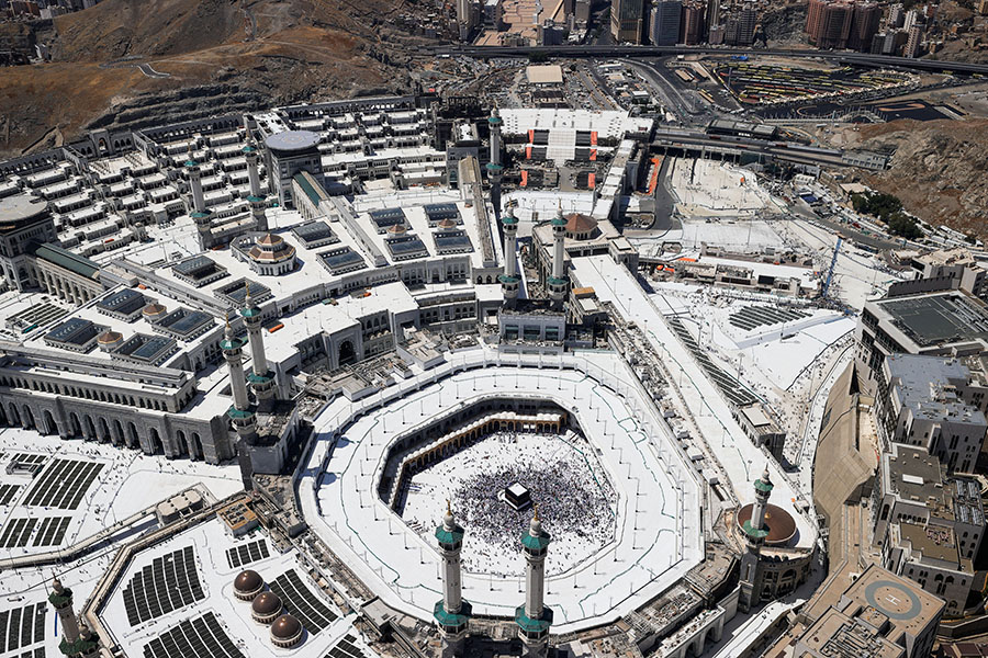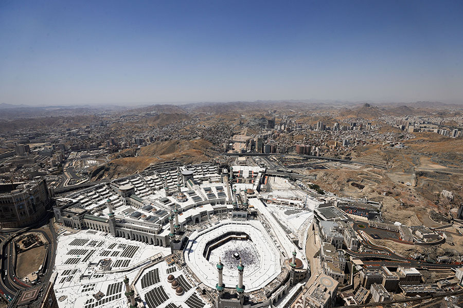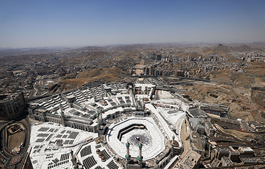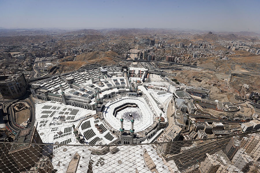 Mekke’de hacı adaylarının kutsal yolculuğunu takip eden yabancı gazeteciler, Kraliyet Saat Kulesi’nden Kâbe ve çevresini görüntüledi.