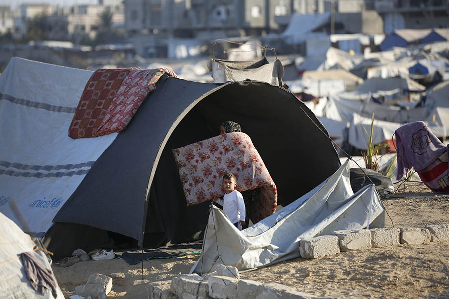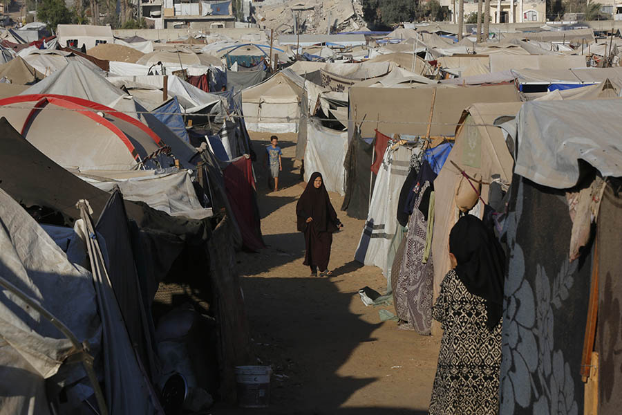 Evlerini kaybeden binlerce Filistinli, Deyr Balah kentindeki çadırlarda hayatta kalmaya çalışıyor.