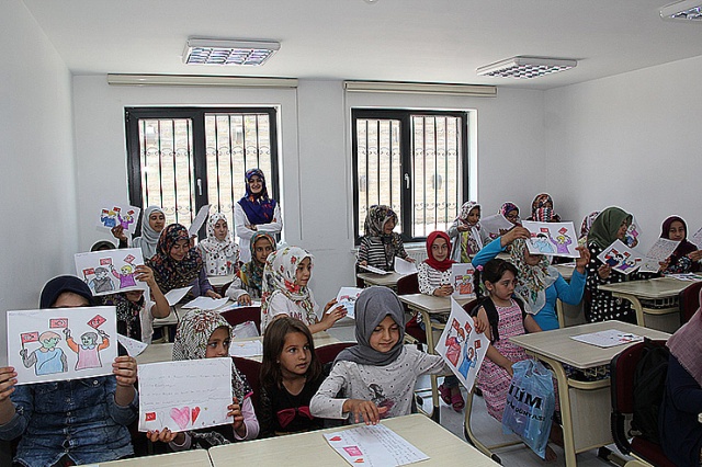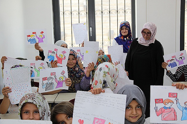 Kurstaki 30 öğrenci, öğretmenleri Rumeysa Yavuz’un rehberliğinde 15 Temmuz’da yaşananlarla ilgili duygularını mektup yazarak ve resim çizerek gösterdi.