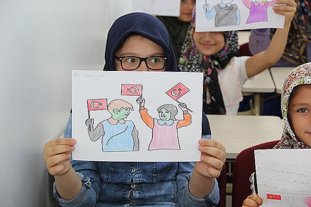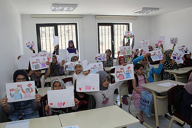 Resim ve mektuplarıyla duygularını ifade eden öğrenciler, semalarımızdan ezanımızın dinmemesi ve bayrağımızın inmemesi için canını ortaya koyarak fedakârca çalışanları, polisimizi ve askerimizi, ne kadar çok sevdiklerini, onlara ne kadar çok dua ettiklerini ifade ettiler.