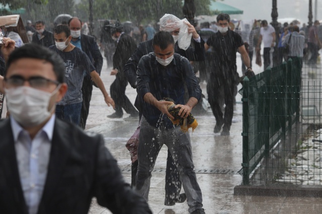 Ankara Melike Hatun Camii'nde cuma namazı, yeni tip koronavirüs (Kovid-19) tedbirleri ile kılındı. Vatandaşlar cuma namazını, öğle saatlerinde etkili olan sağanak yağmur altında kıldı.
