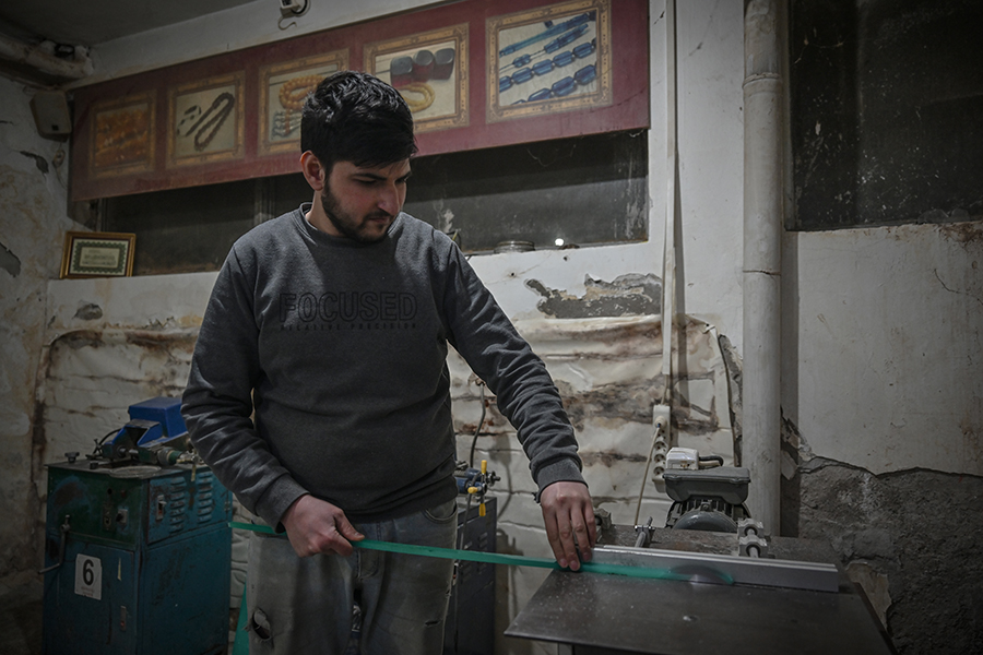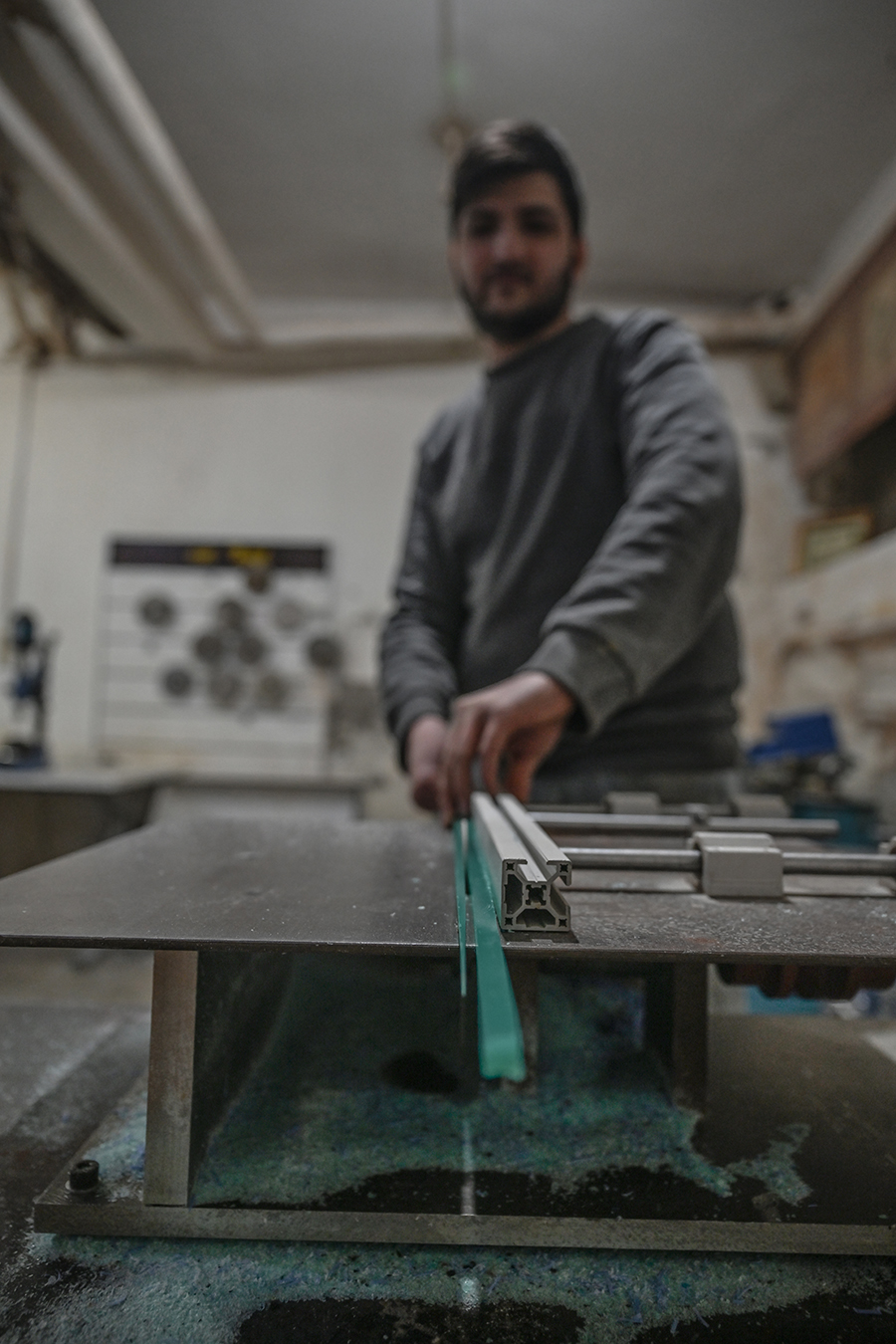 Osmanlı döneminden kalma motiflerin de kullanıldığı tespihin yapılacağı madde önce testereyle uygun ende çubuklar halinde kesiliyor. Ardından bu çubuklar istenilen tane boyuna göre bölünerek tornada tam ortadan deliniyor.