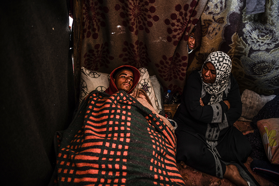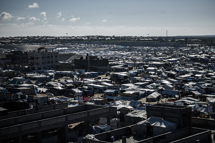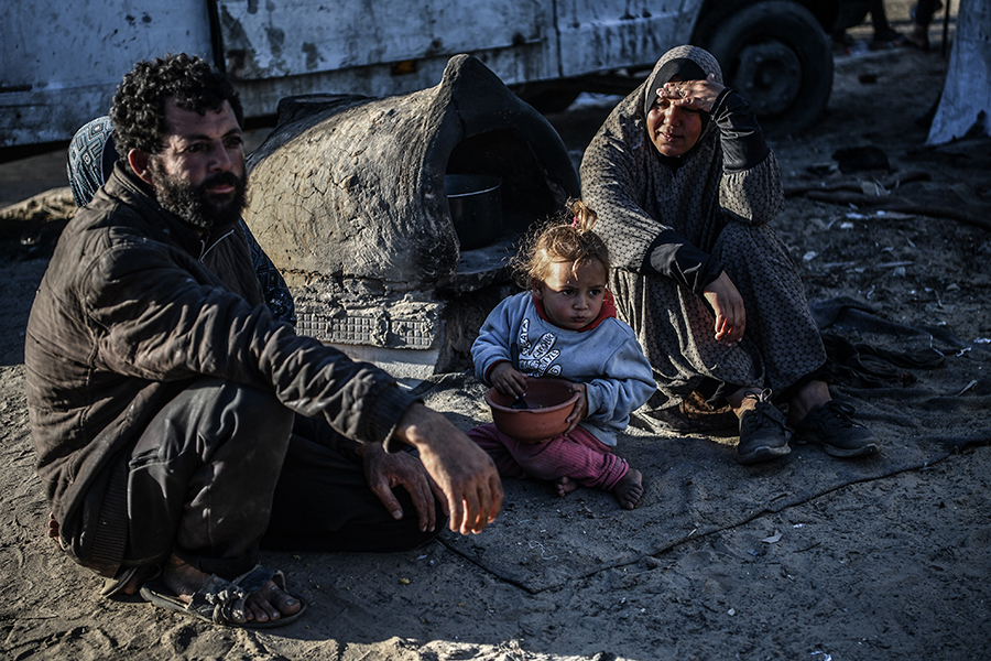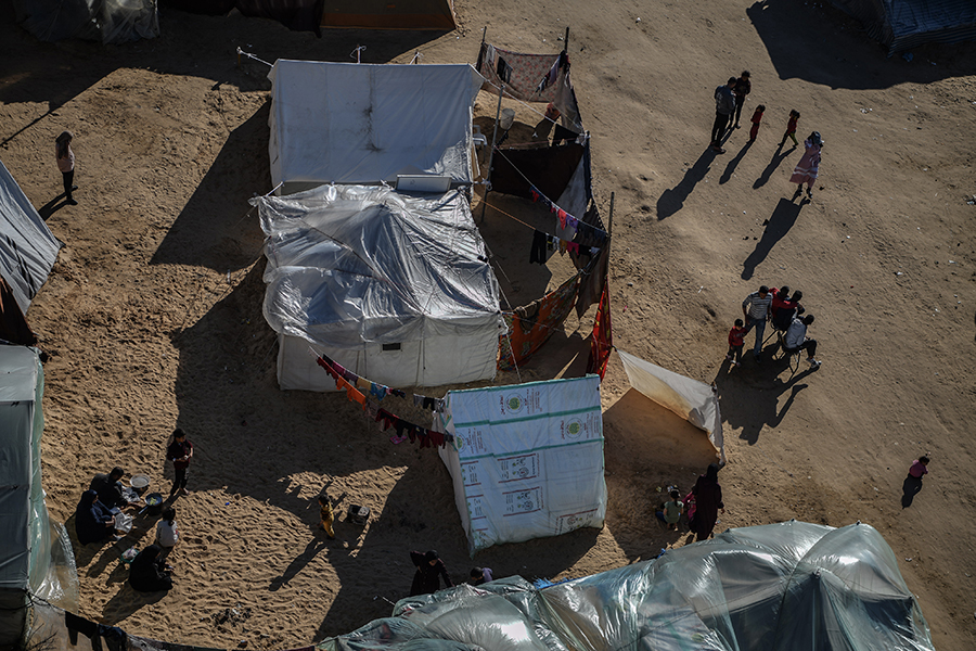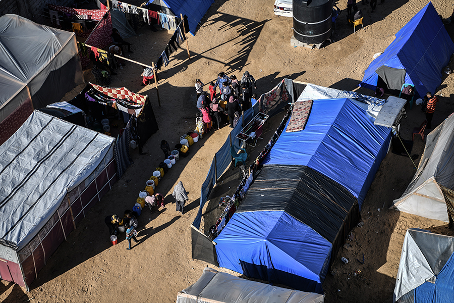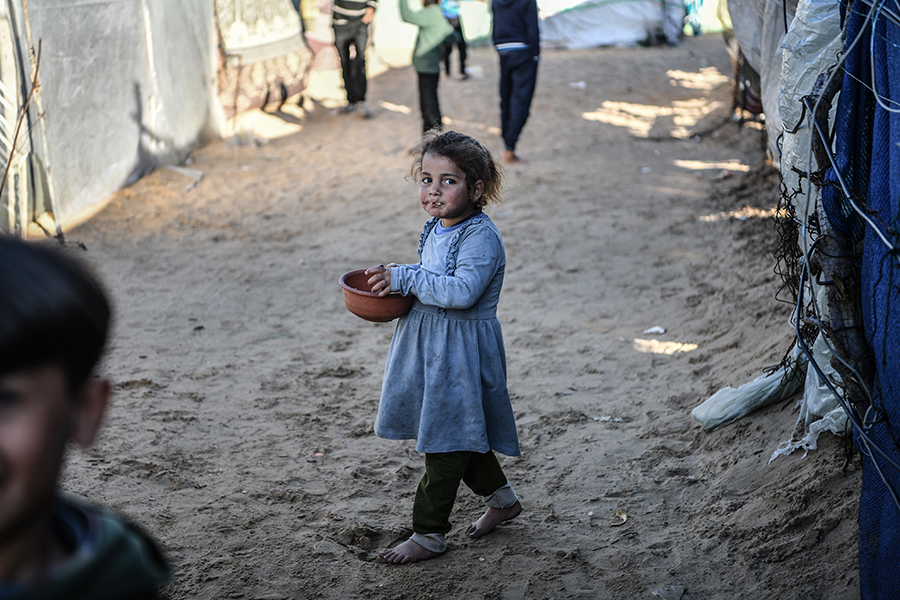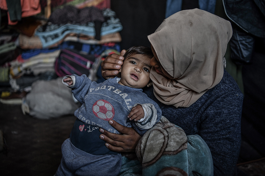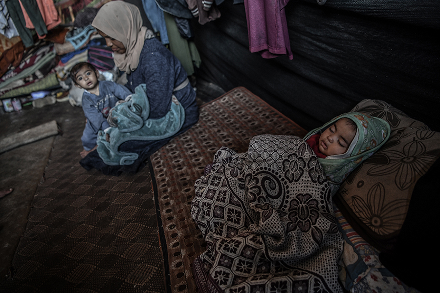 Katil İsrail'in bombardımanından korunmak ve can güvenliklerini sağlayabilmek için evlerini terk edip Gazze'nin Refah kentine sığınan Filistinli aileler, derme çatma çadırlarda zor şartlar altında yaşamlarını sürdürmeye çalışıyor.